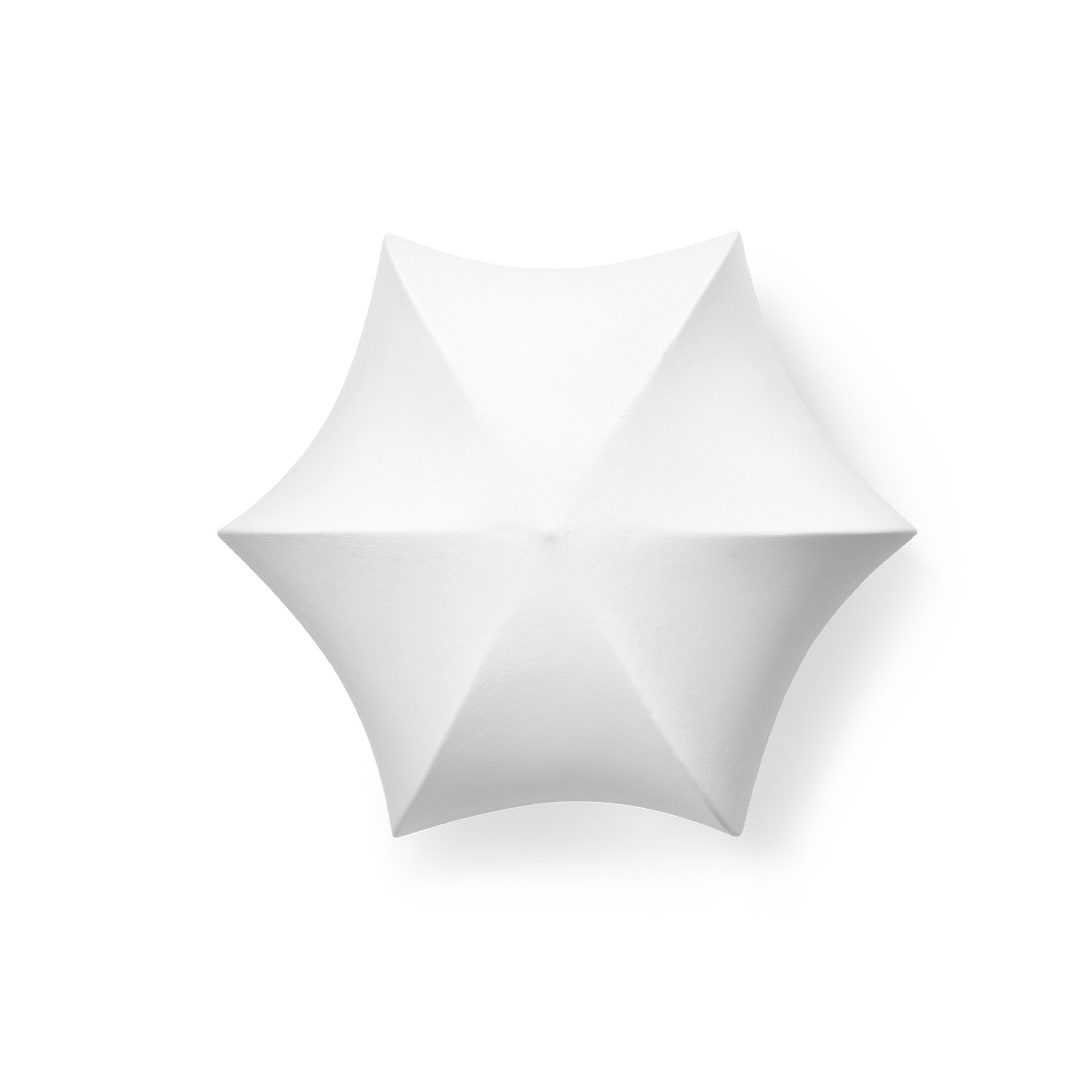 Poem Ceiling/Wall Lamp från Ferm Living är en lampa som är lika fin som vägglampa som taklampa. Designen hämtar inspiration från de överdådiga detaljerna i barockkonst och arkitektur, och har ett romantiskt och elegant uttryck. Genom en process där flytande vävnad sprayas över lampans inre stålkonstruktion, skapas en genomskinlig skärm som konstfullt sträcker sig över intrikata bågar. Detta säkerställer att lampan avger ett mjukt, diffust ljus samtidigt som den liknar en skör blomma. Den icke-vävda polymerskärmen patineras vackert över tid och ger den ett unikt utseende.