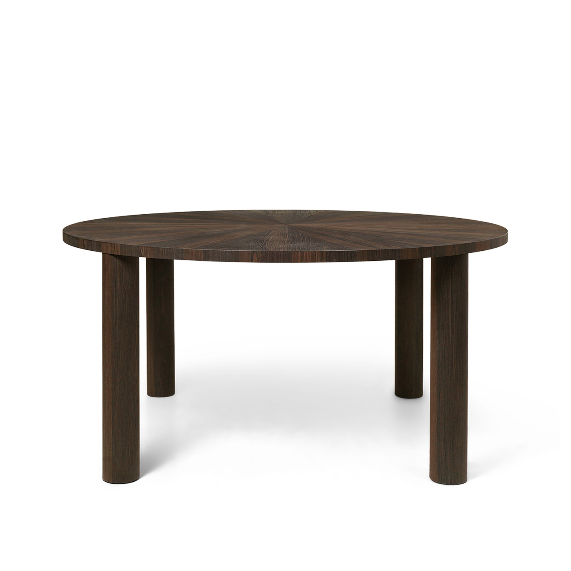 Post Dining Table Star från Ferm Living är ett stort runt matbord med gott om plats för middagar med vänner och familj. Bordet är tillverkat av FSC™ Mix-certifierat ek med MDF-kärna och har fyra robusta cylindriska ben. Den imponerande bordsskivan är handgjord och har en elegant och unik ekfanerpanel i stjärnformation, uppnådd genom en teknik som kallas intarsia.