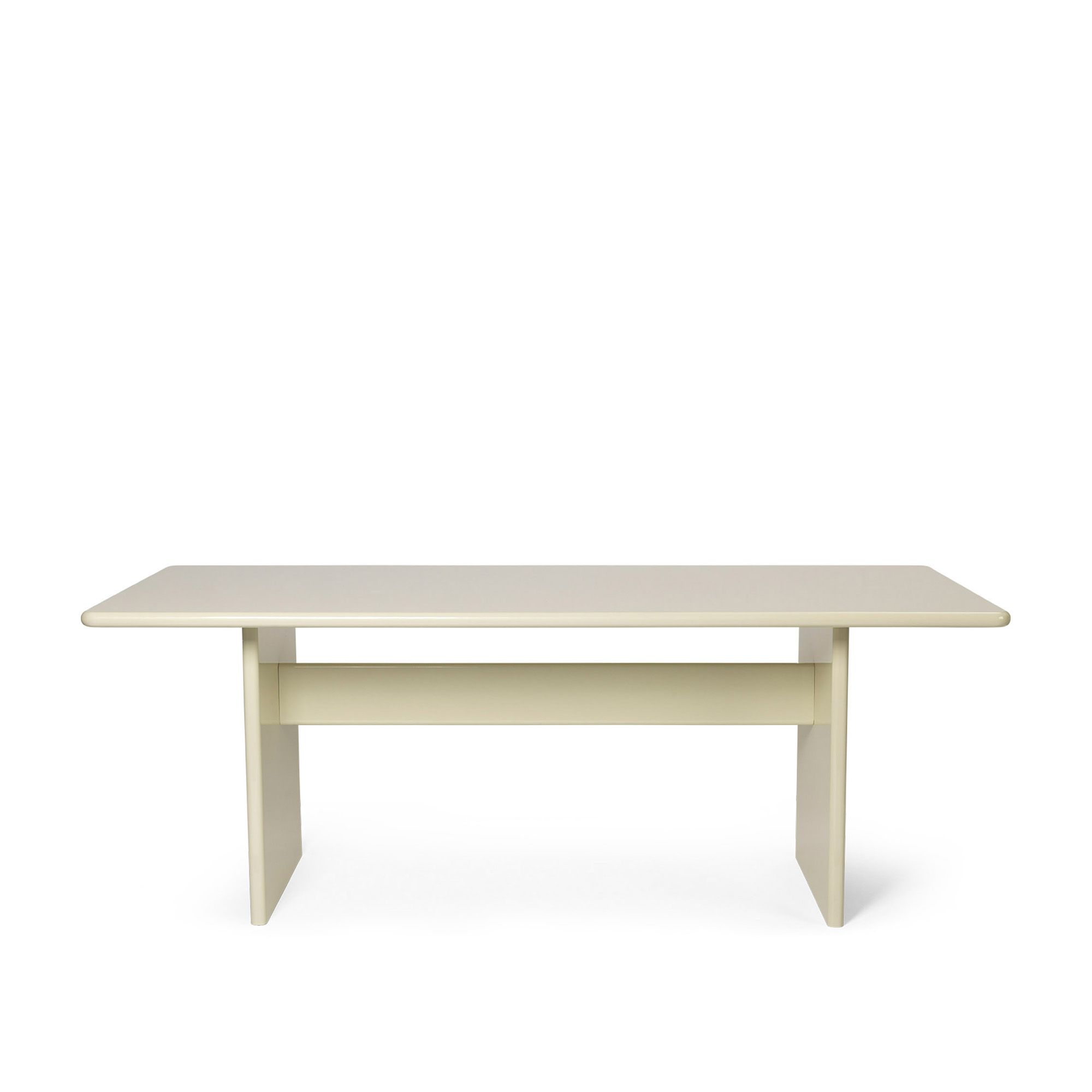 Rink är ett matbord i MDF från det danska varumärket Ferm Living. Bordet är tillverkat av FSC®-certifierad MDF med en högglanslackerad yta som framhäver de mjuka, rundade formerna. Designen utgår från en arketypisk bordssilhuett men förfinas genom detaljer i form och proportion. Den glansiga finishen ger ett monolitiskt uttryck med tydlig närvaro i rummet.