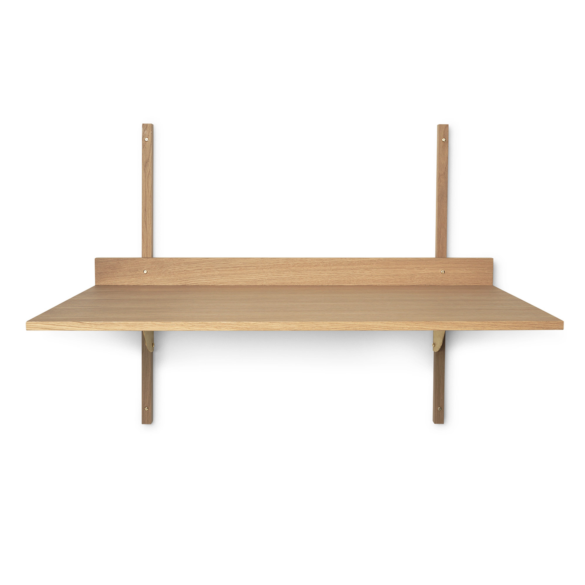 Sector Desk är ett modernt vägghängt skrivbord från Ferm Living. Skrivbordet definieras av sin smarta men enkla konstruktion som består av ett hyllplan med konsoler och eleganta inslag av mässing. Placera det som ett fristående skrivbord eller kombinera med hyllorna i samma serie för att få en utökad arbetsyta med fler hyllor för förvaring.