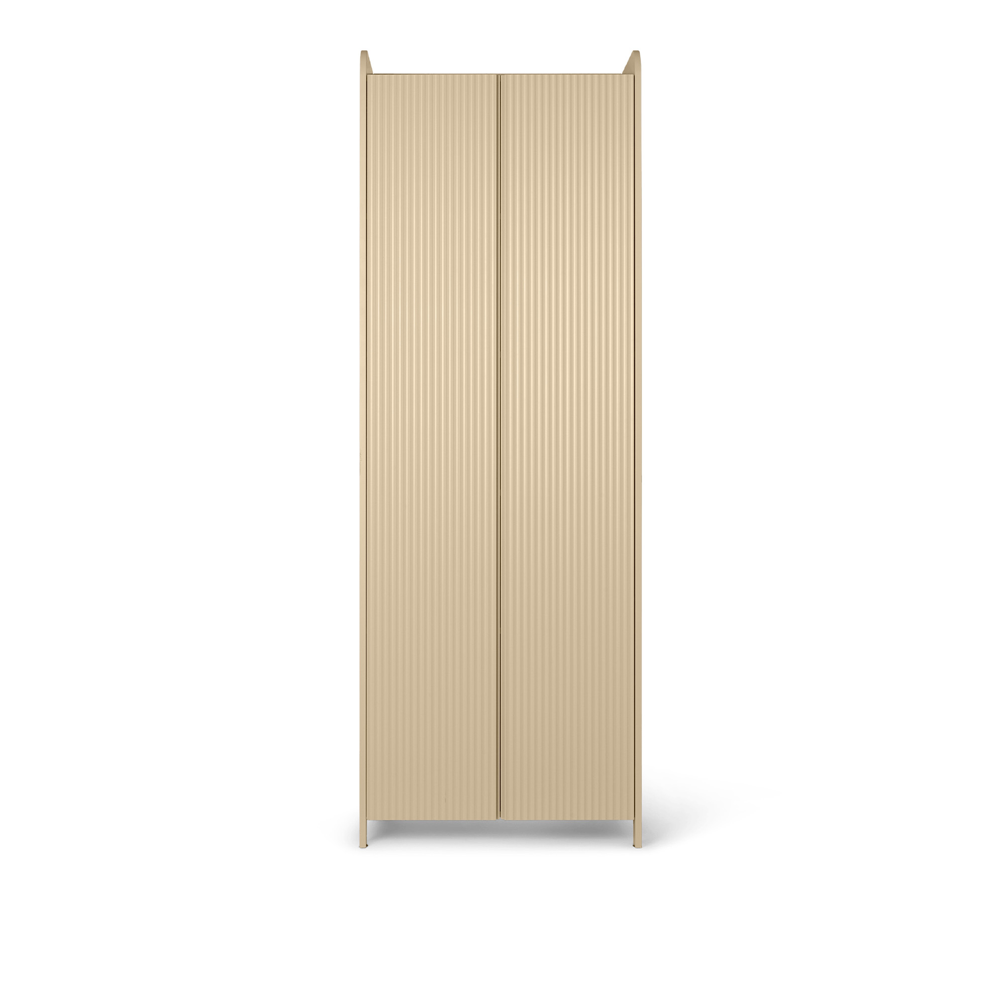 Sill Cupboard Tall från Ferm Living är ett högt och smalt skåp som erbjuder en smidig förvaringslösning. Namnet Sill kommer från franskans ""sillon"", som betyder skurna räfflor, vilka pryder dörrarna på Sill Cupboard Tall. Använd detta höga skåp i barnrummet, hallen, sovrummet eller för kontorsförvaring – hyllorna inuti är tillräckligt höga för att rymma anteckningsböcker och pärmar. Förutom de räfflade dörrarna bidrar rundade hörn till det lekfulla uttrycket som är utmärkande för Sills design. Skåpet är tillverkat av FSC™ Mix-certifierad VMDF och laminat med skurna dörrar.