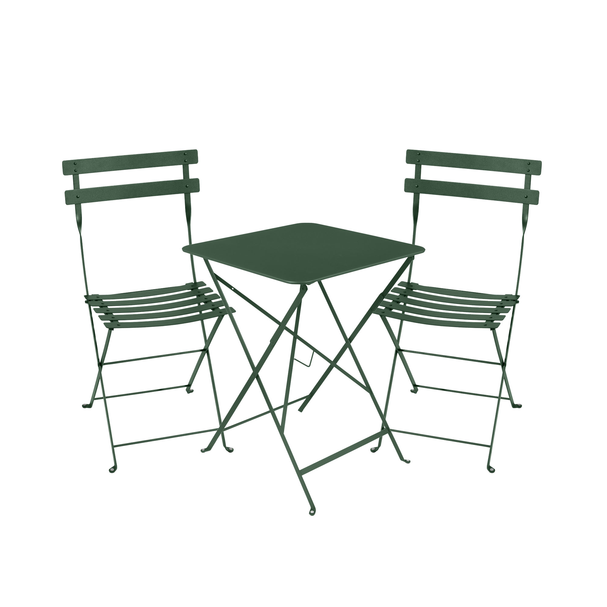 Fermob - Bistro matgrupp bord 57cm & 2 metall stolar Cedar Green - Matgrupper utomhus