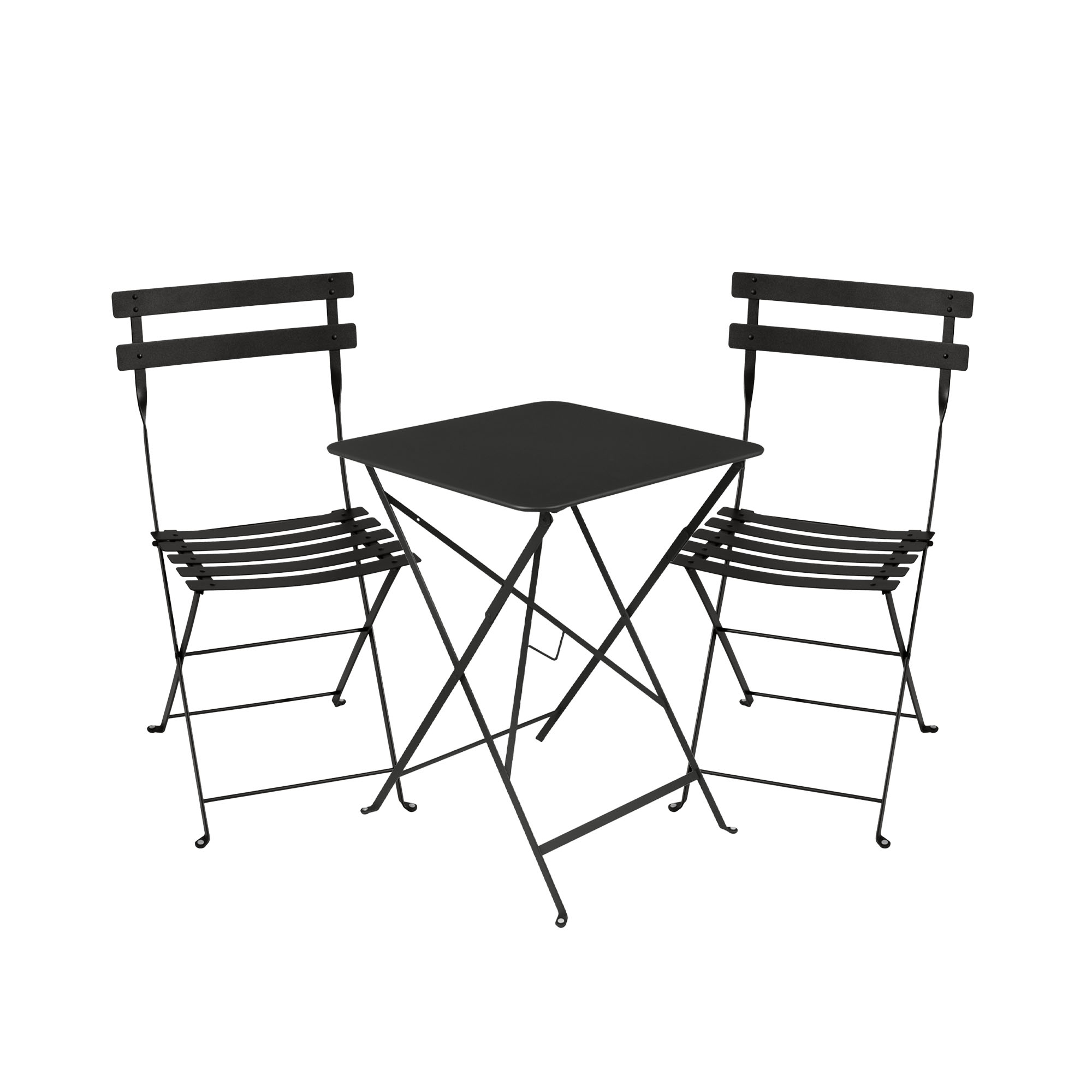 Fermob - Bistro matgrupp bord 57cm & 2 metall stolar liquorice - Matgrupper utomhus