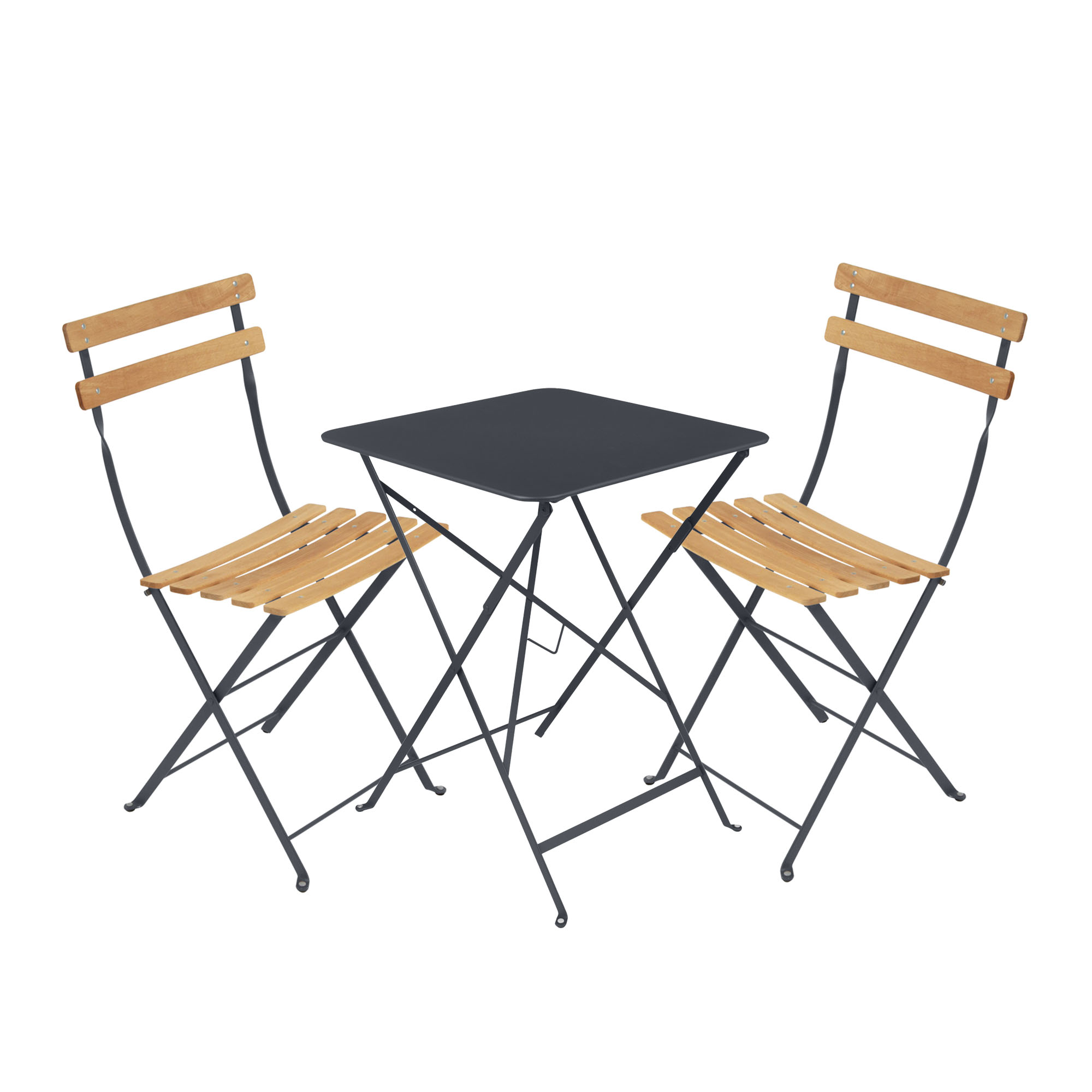 Fermob - Bistro matgrupp bord 57cm & 2 trä stolar anthracite - Matgrupper utomhus
