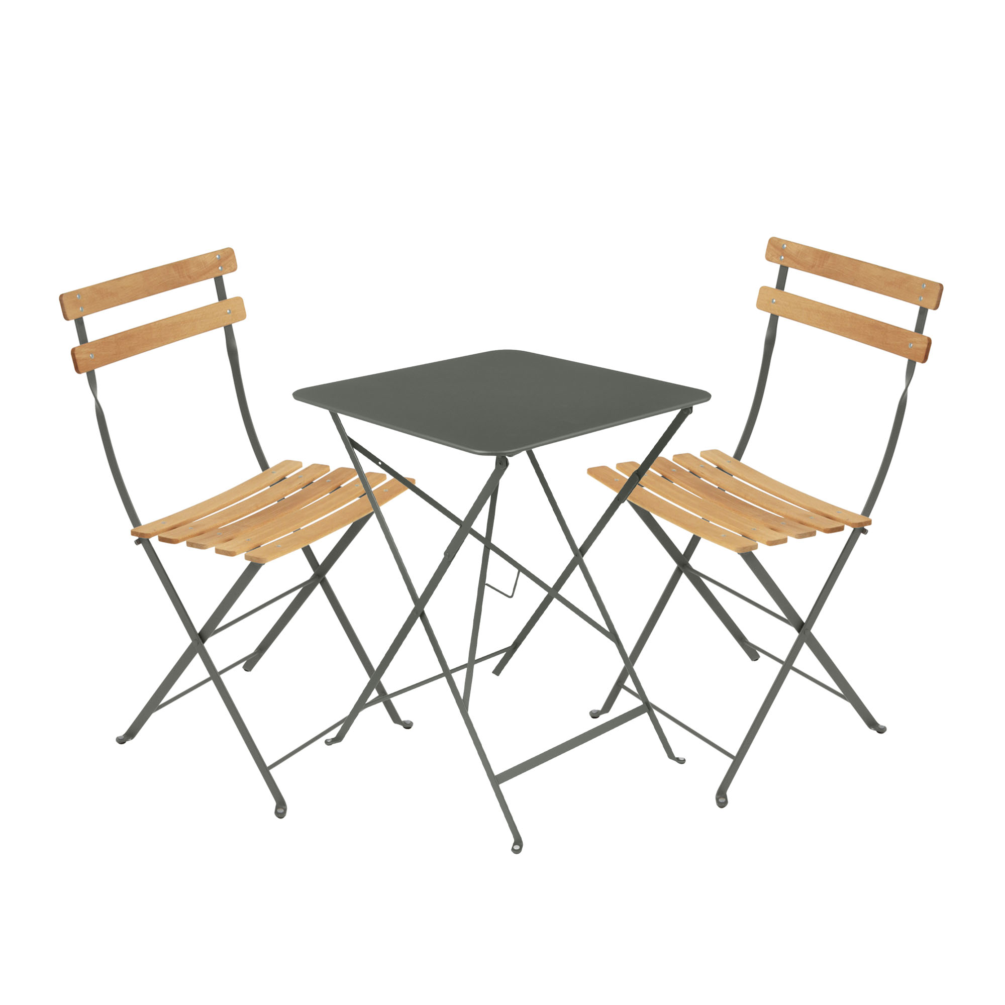 Fermob - Bistro matgrupp bord 57cm & 2 trä stolar rosemary - Matgrupper utomhus