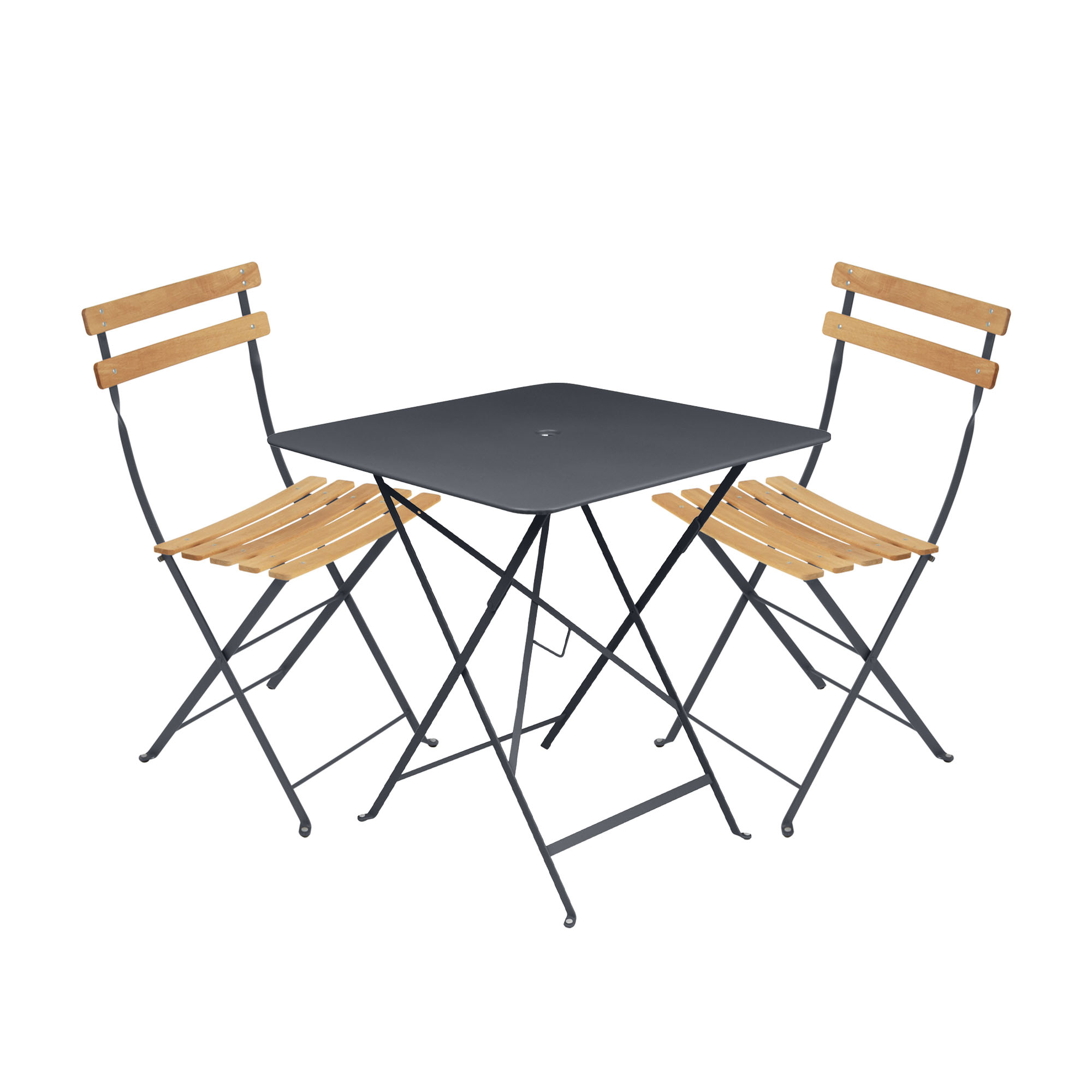 Fermob - Bistro matgrupp bord 71cm & 2 trä stolar anthracite - Matgrupper utomhus