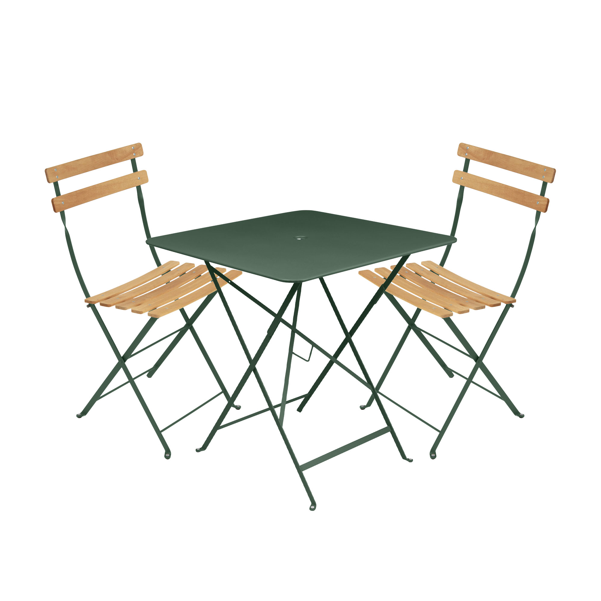 Fermob - Bistro matgrupp bord 71cm & 2 trä stolar cedar green - Matgrupper utomhus