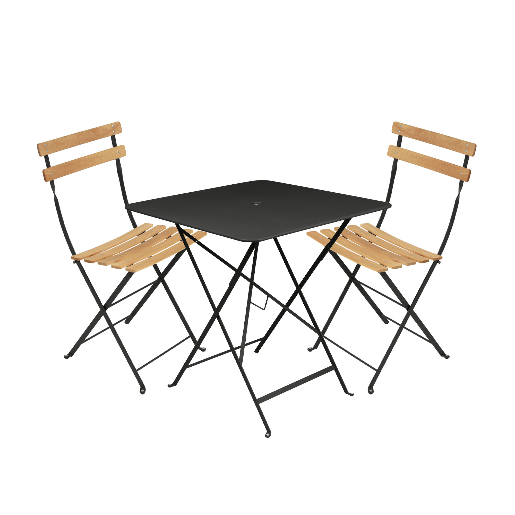 Fermob - Bistro matgrupp bord 71cm & 2 trä stolar liquorice - Matgrupper utomhus
