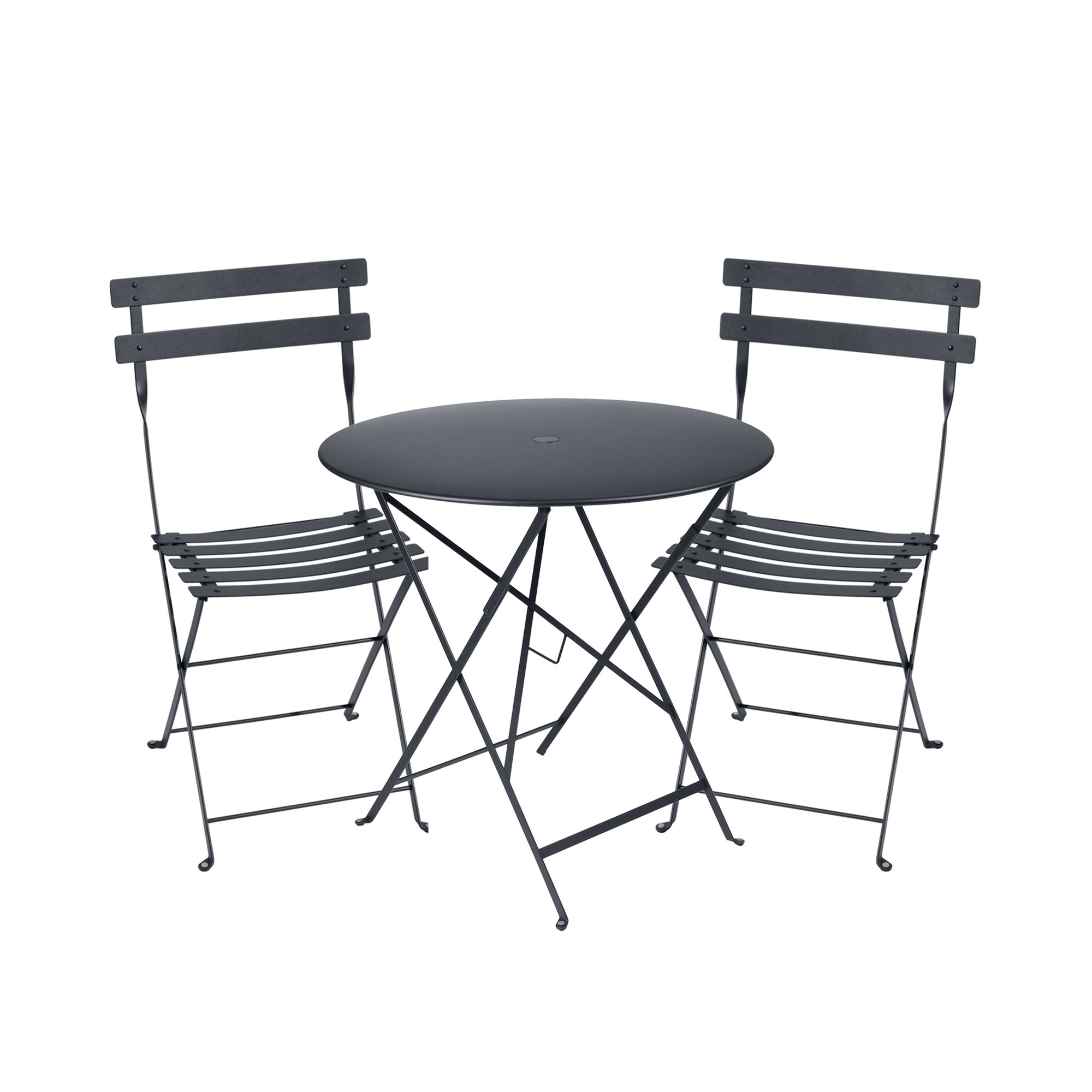 Fermob - Bistro matgrupp bord 77cm & 2 metall stolar anthracite - Matgrupper utomhus