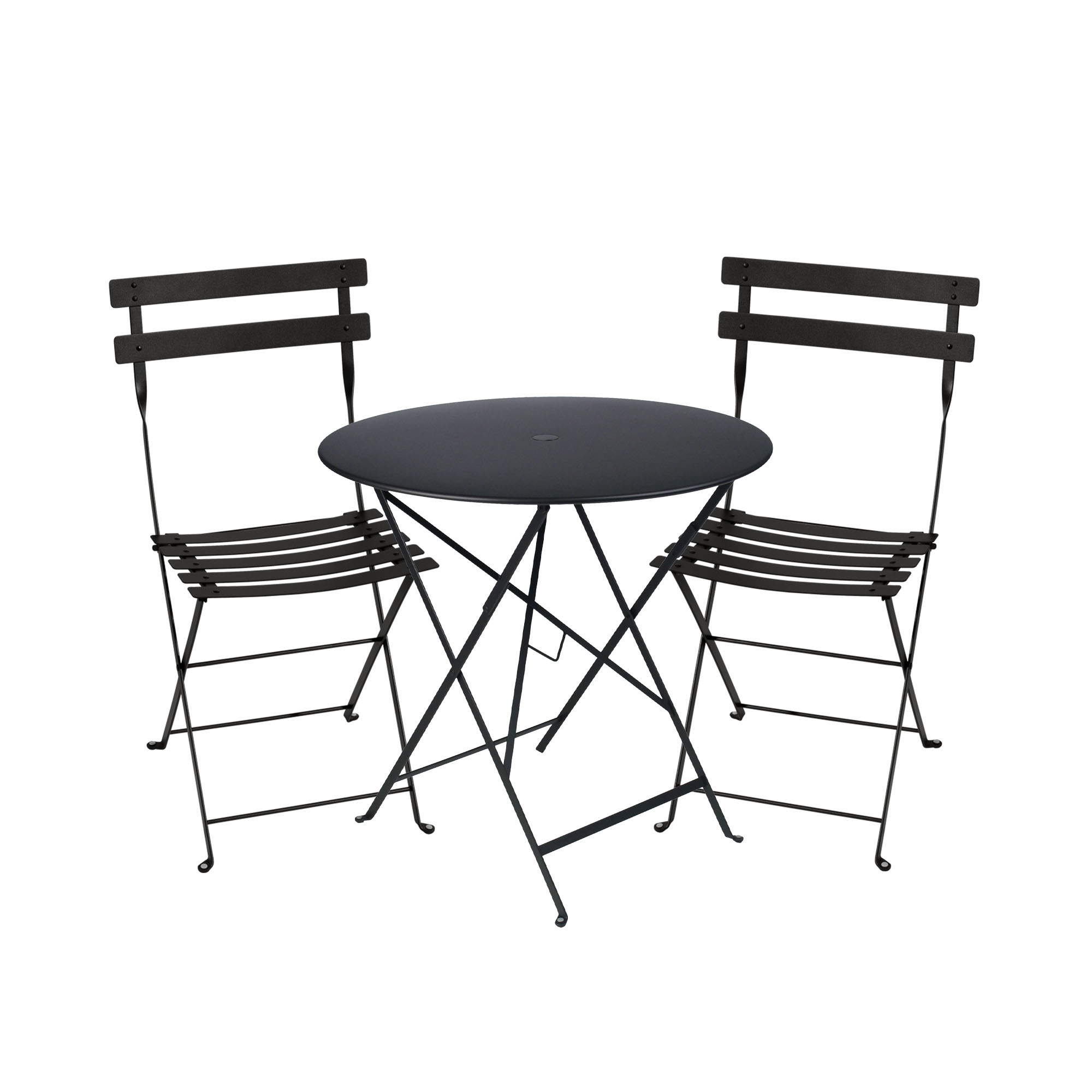 Fermob - Bistro matgrupp bord 77cm & 2 metall stolar liquorice - Matgrupper utomhus