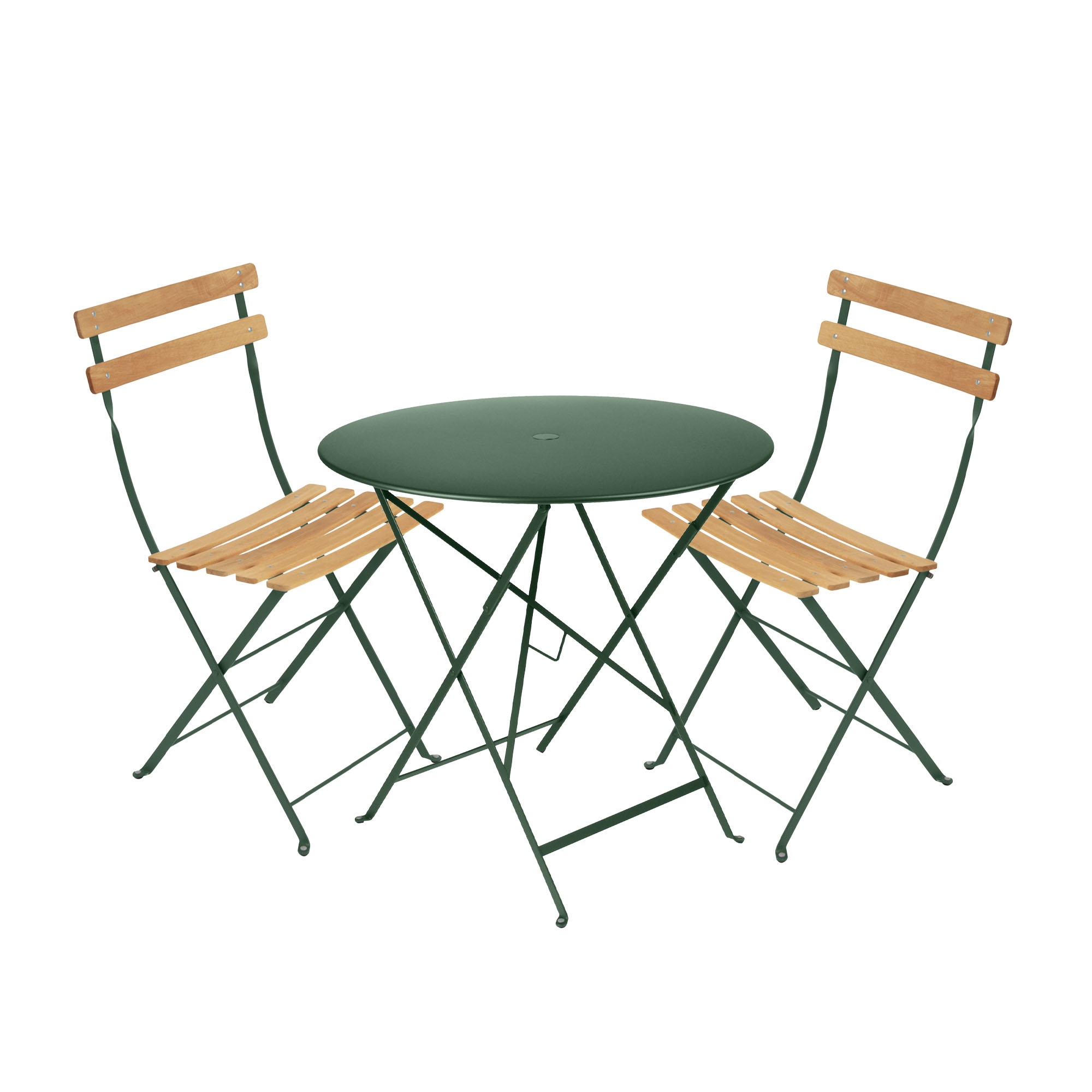 Fermob - Bistro Matgrupp Bord Ø77 cm & 2 st Natural Chair Cedar Green - Matgrupper utomhus