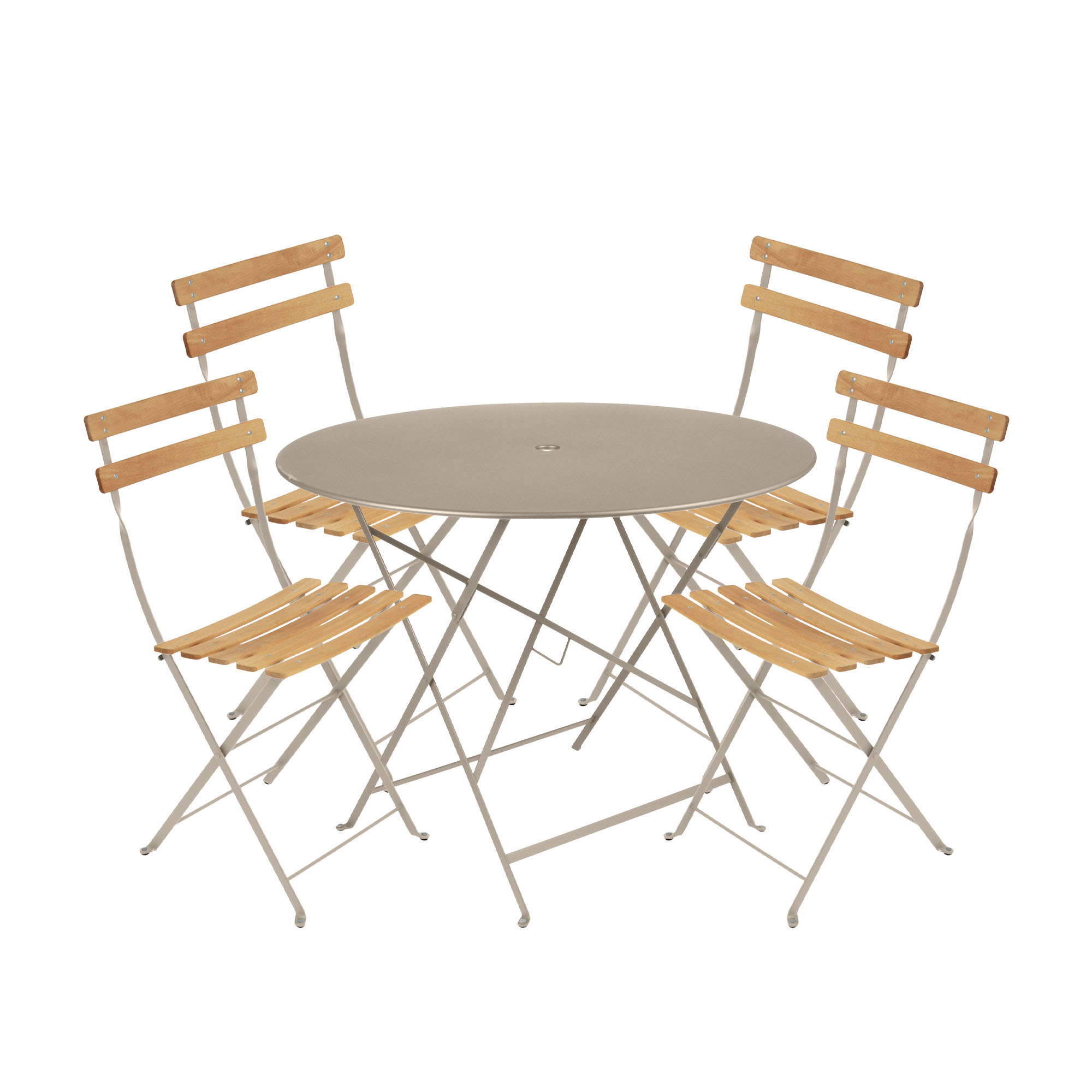 Fermob - Bistro matgrupp Ø96cm & 4 trä stolar nutmeg - Matgrupper utomhus