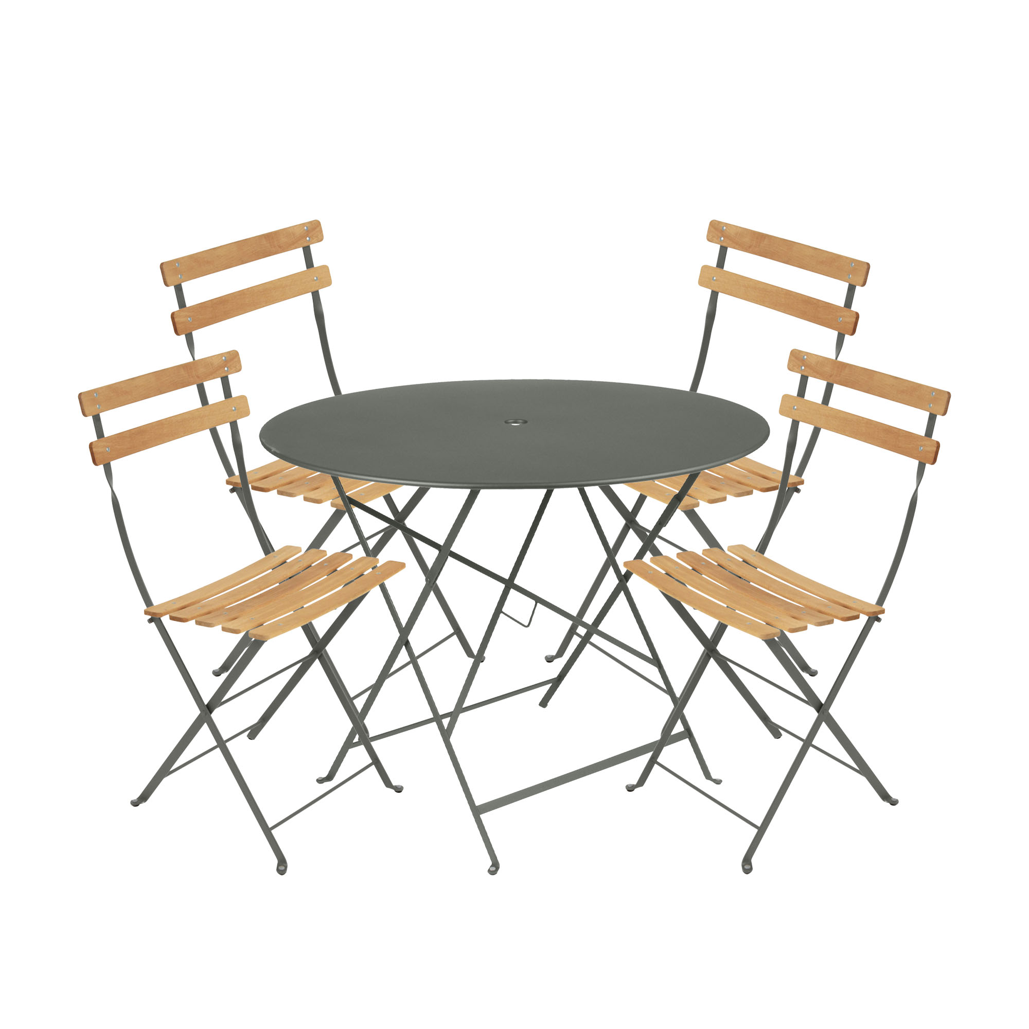 Fermob - Bistro matgrupp Ø96cm & 4 trä stolar rosemary - Matgrupper utomhus