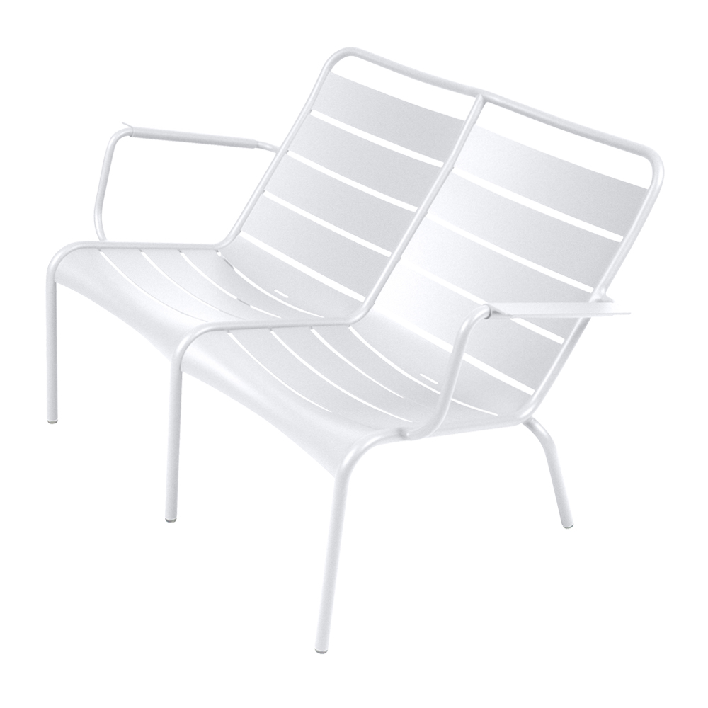 Luxembourg Duo Low Armchair från Fermob är en lättflyttad och stilren utomhusmöbel som passar utmärkt i trädgården och ger sittplats för två personer. Serien Luxembourg är formgiven av Frédéric Sofia och innehåller ett flertal möbler i pulverlackerad aluminium.