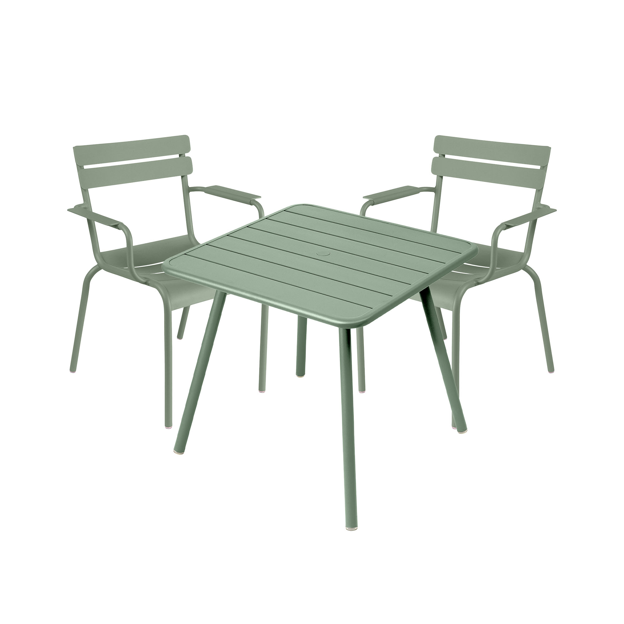 Fermob - Luxembourg matgrupp fyrbent bord & 2 karmstolar cactus - Matgrupper utomhus
