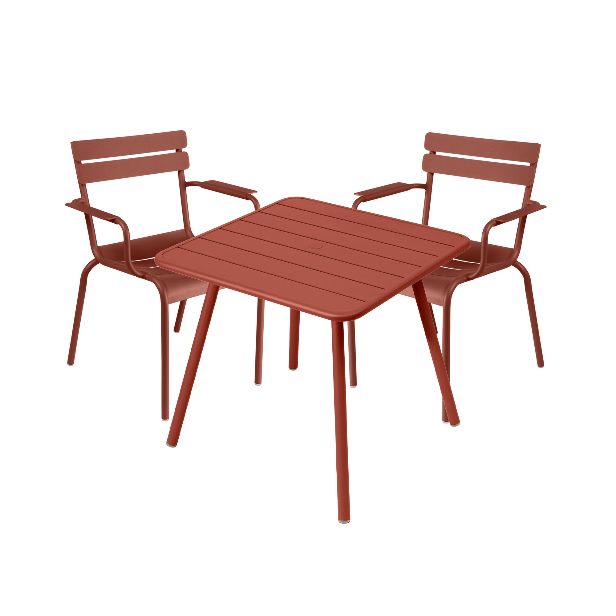 Fermob - Luxembourg matgrupp fyrbent bord & 2 karmstolar red ochre - Matgrupper utomhus