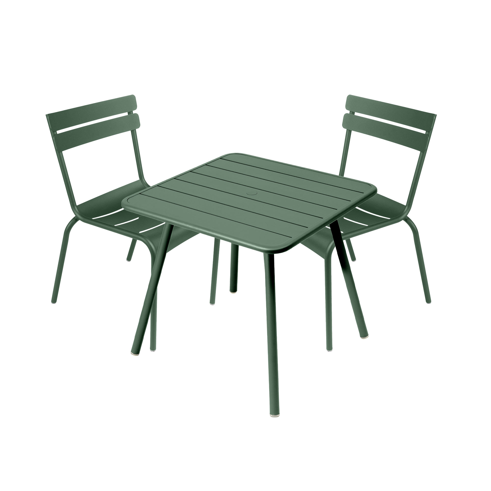 Fermob - Luxembourg matgrupp fyrbent bord & 2 stolar cedar green - Matgrupper utomhus