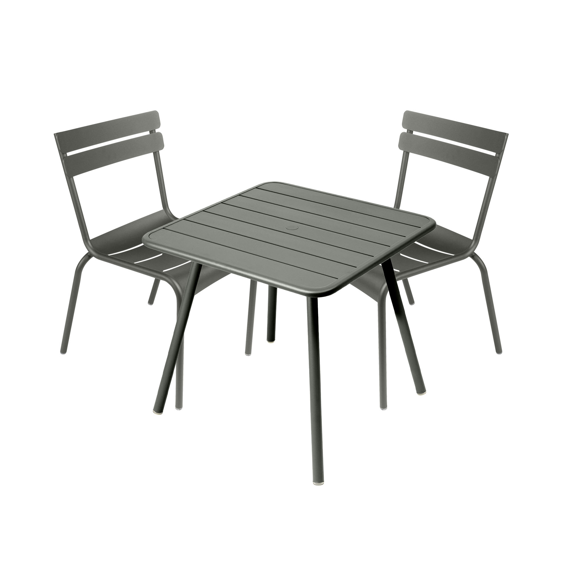 Fermob - Luxembourg matgrupp fyrbent bord & 2 stolar rosemary - Matgrupper utomhus