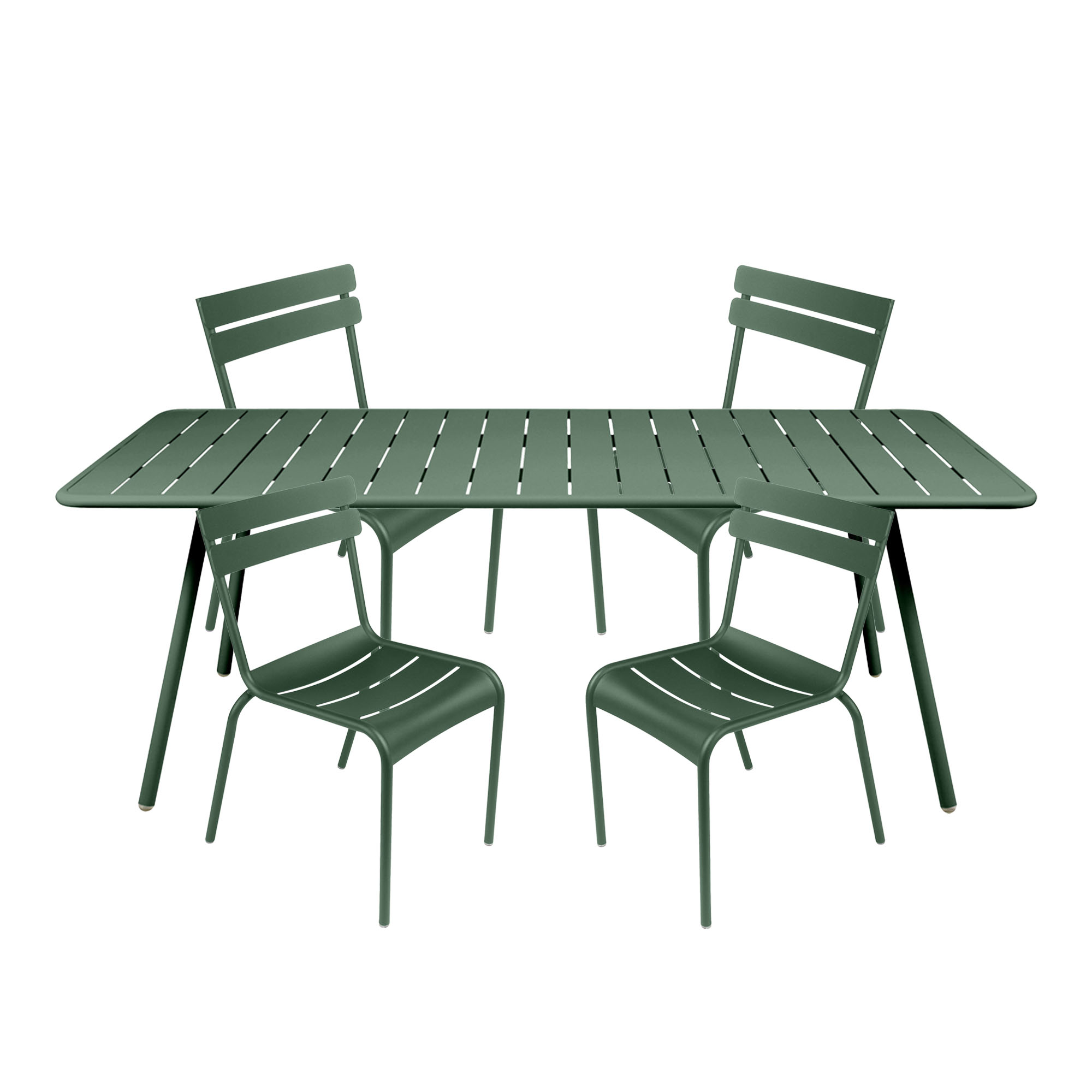 Fermob - Luxembourg matgrupp med bord 207cm & 4 stolar cedar green - Matgrupper utomhus - Frédéric Sofia