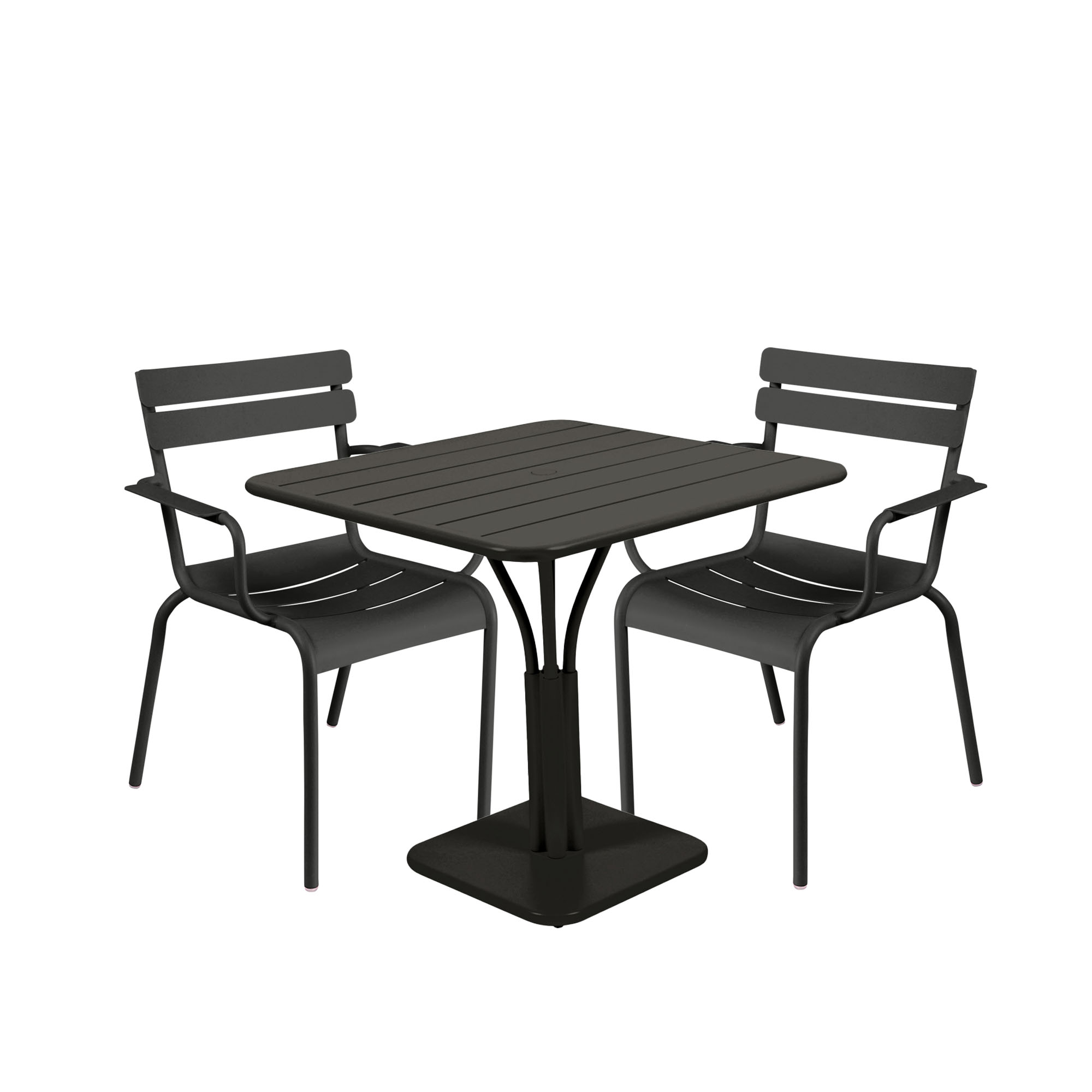 Fermob - Luxembourg matgrupp pedestalbord & 2 karmstolar liquorice - Matgrupper utomhus