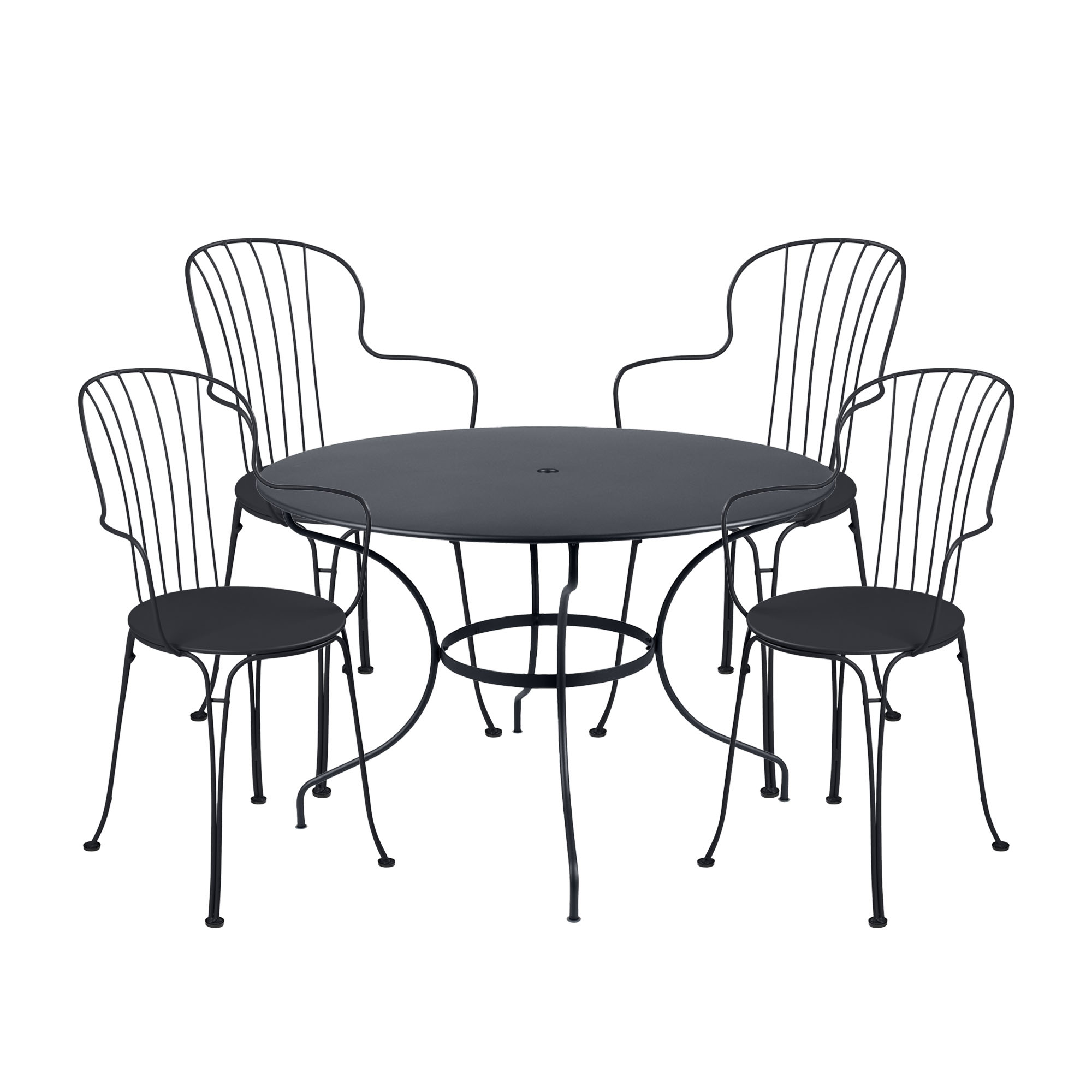 Fermob - Opéra+ matgrupp bord runt Ø117cm & 4 karmstolar anthracite - Matgrupper utomhus