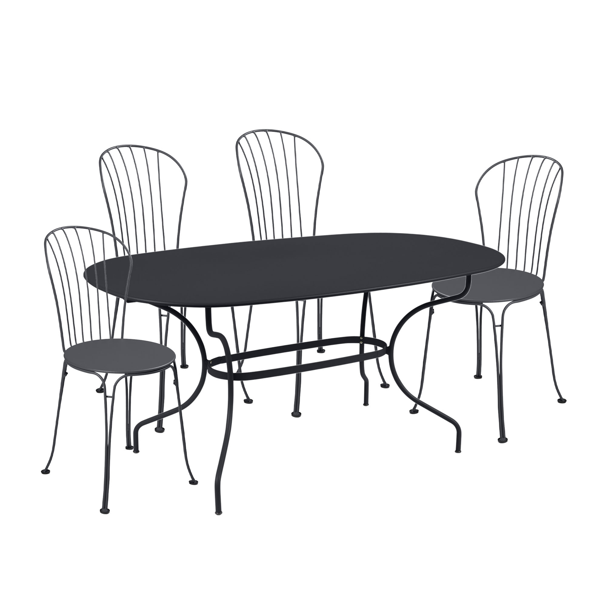 Fermob - Opera+ matgrupp ovlat bord & 4 stolar anthracite - Matgrupper utomhus