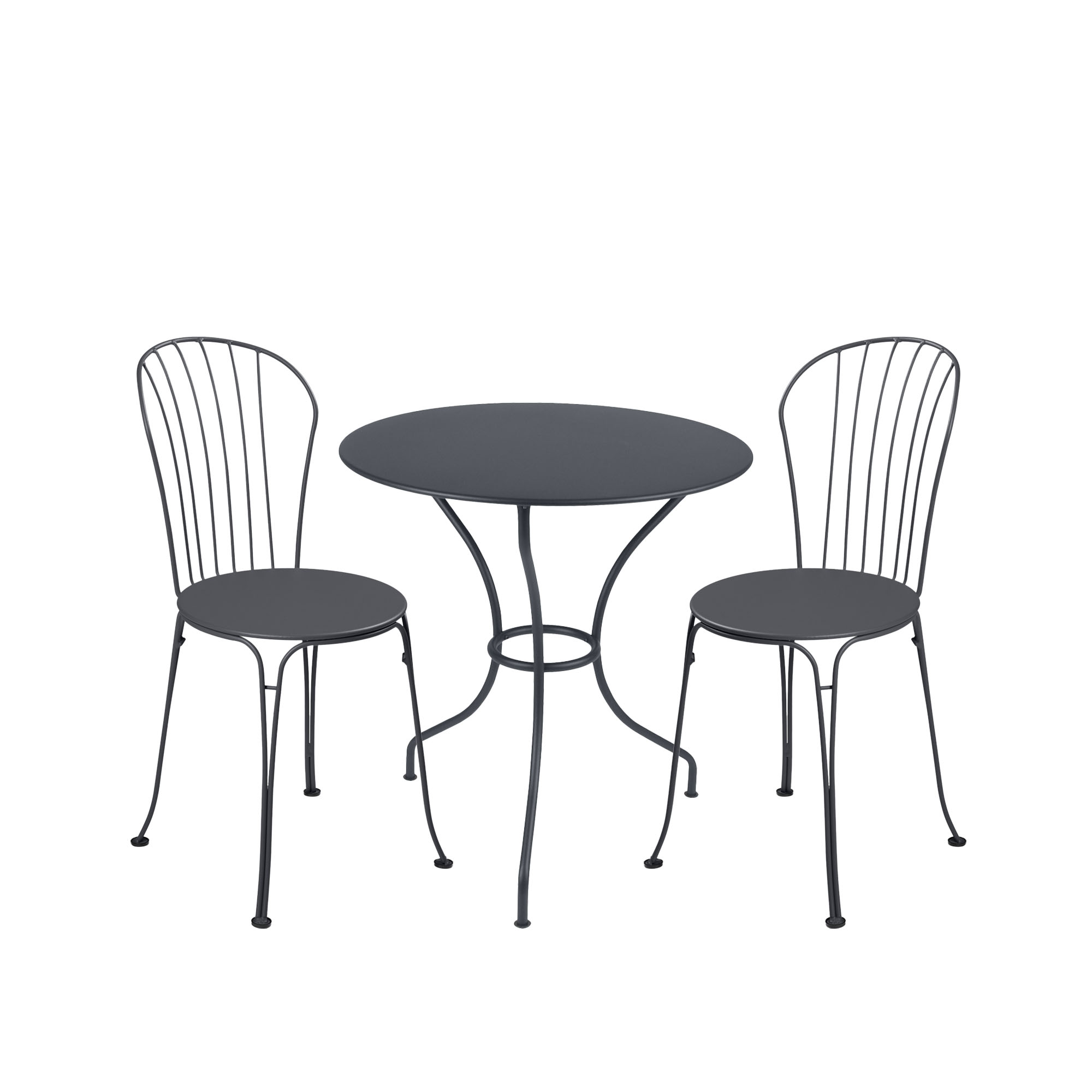 Fermob - Opéra+ matgrupp pedestalbord Ø67cm & 2 stolar anthracite - Matgrupper utomhus