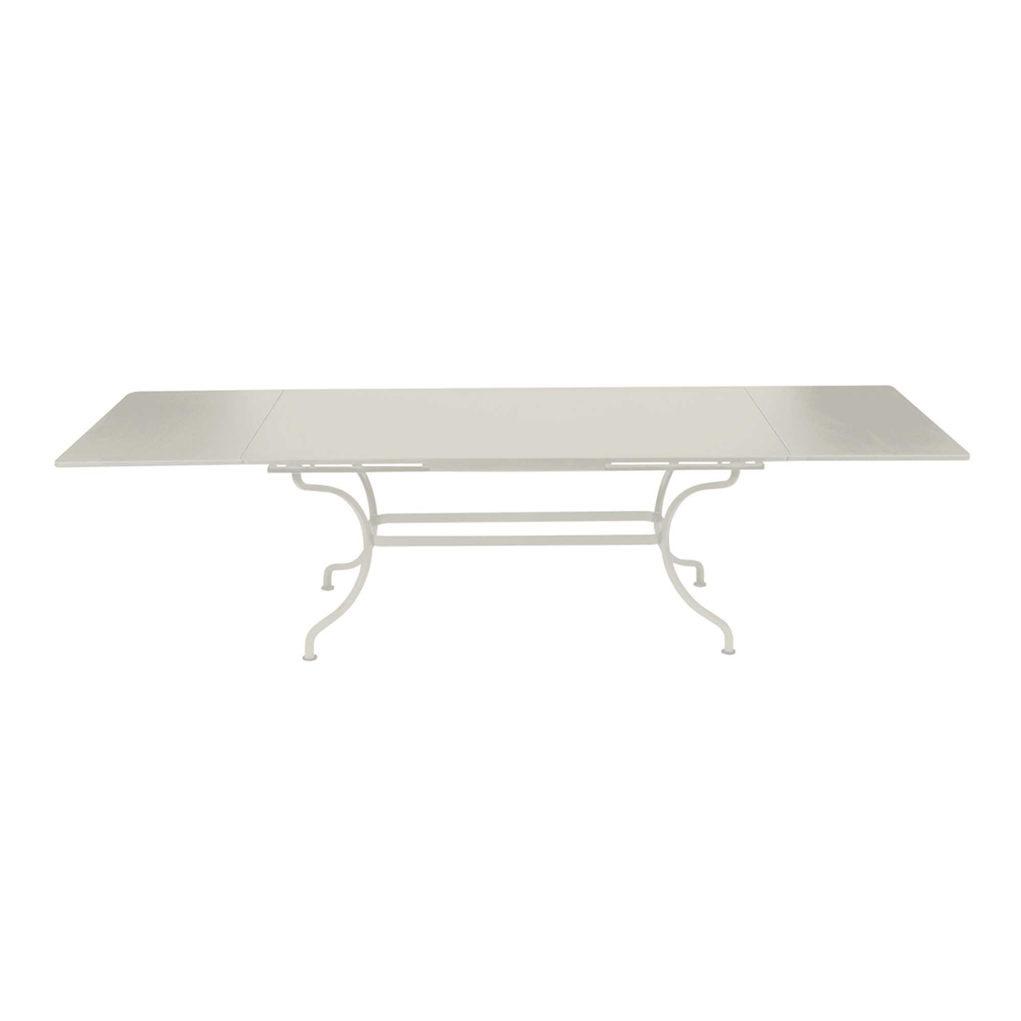 Lätthet, elegans och stabilitet är ledorden för bordet Romane från franska Fermob. Bordet är tillverkat i stål och har en UV-beständig polylack vilket gör att det lämpar sig utmärkt för utomhusbruk. Tack vare de uppfällbara skivorna kan bordets bredd utökas från två till tre meter. Finns i flera olika utföranden.