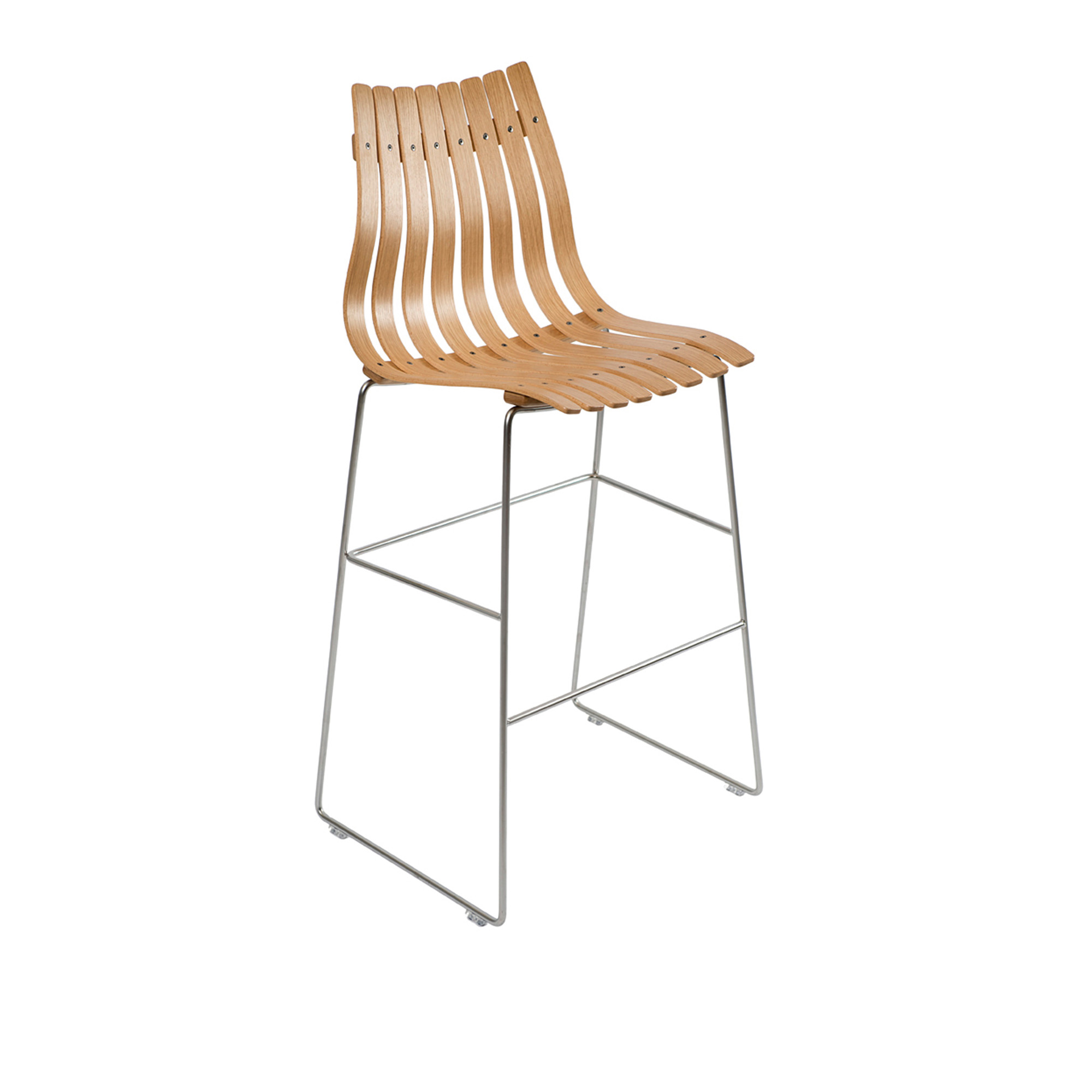 Fjordfiesta - Scandia Bar Stool 75 cm Natural Oak Veneer / Satin Chrome - Barstolar - Hans Brattrud - Träfärgad - Metall/Trä