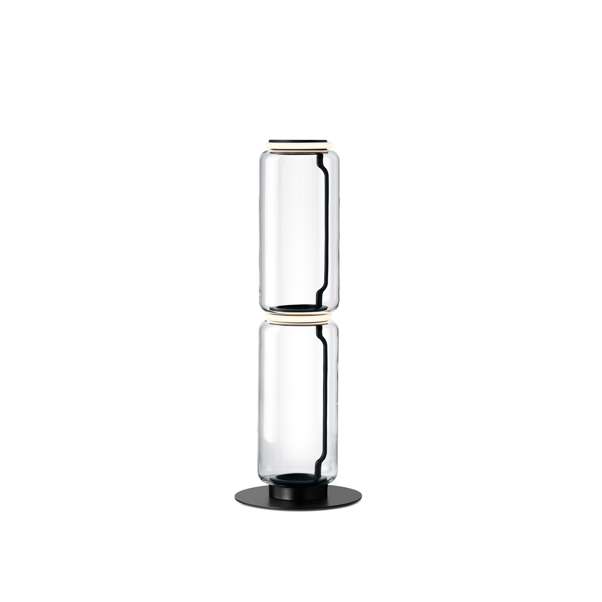 Flos - Noctambule Floor - 2 High Cylinders - Small Base - Black - Skärmlampor - Konstantin Grcic - Transparent,Svart