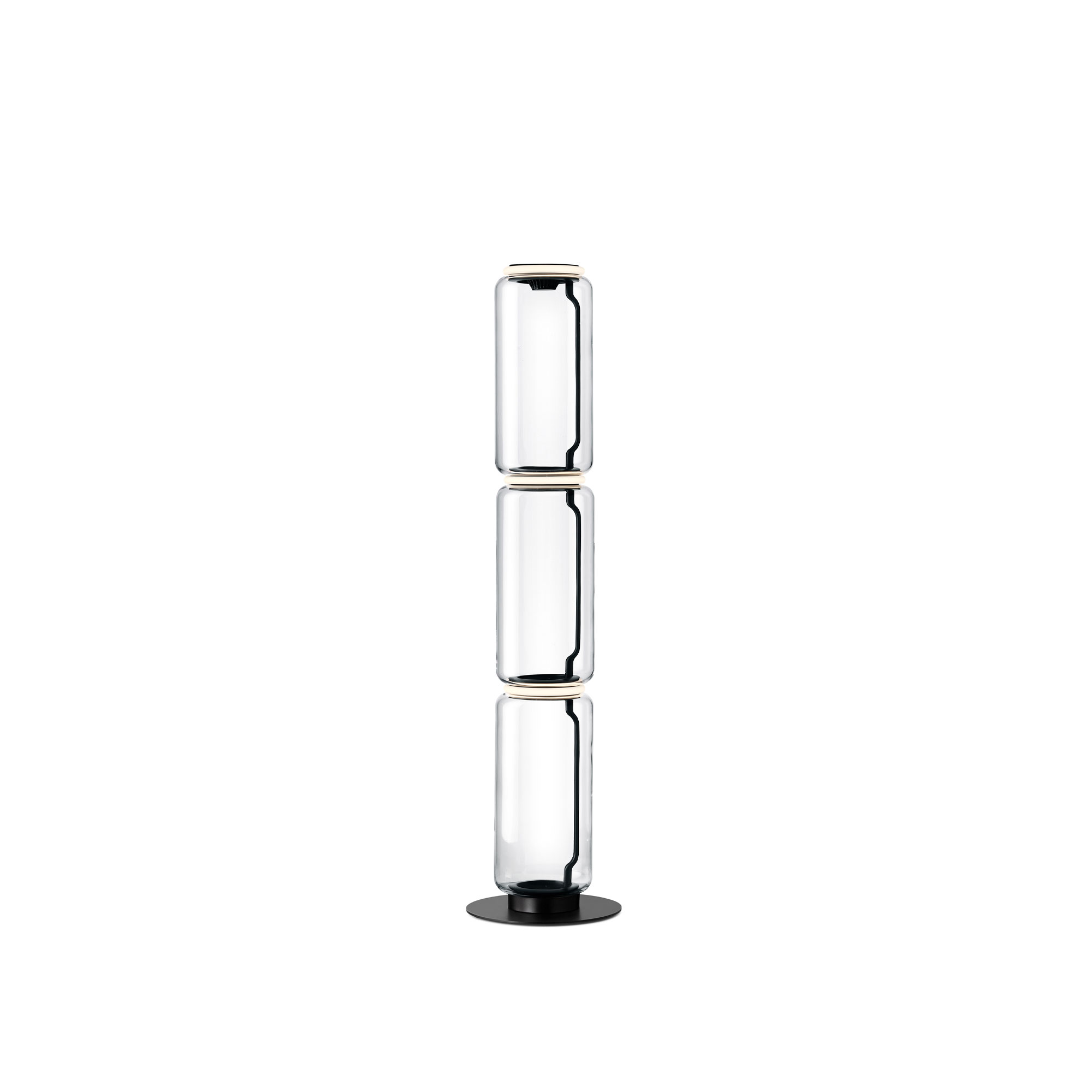 Flos - Noctambule Floor - 3 High Cylinders - Small Base - Black - Skärmlampor - Konstantin Grcic - Transparent,Svart
