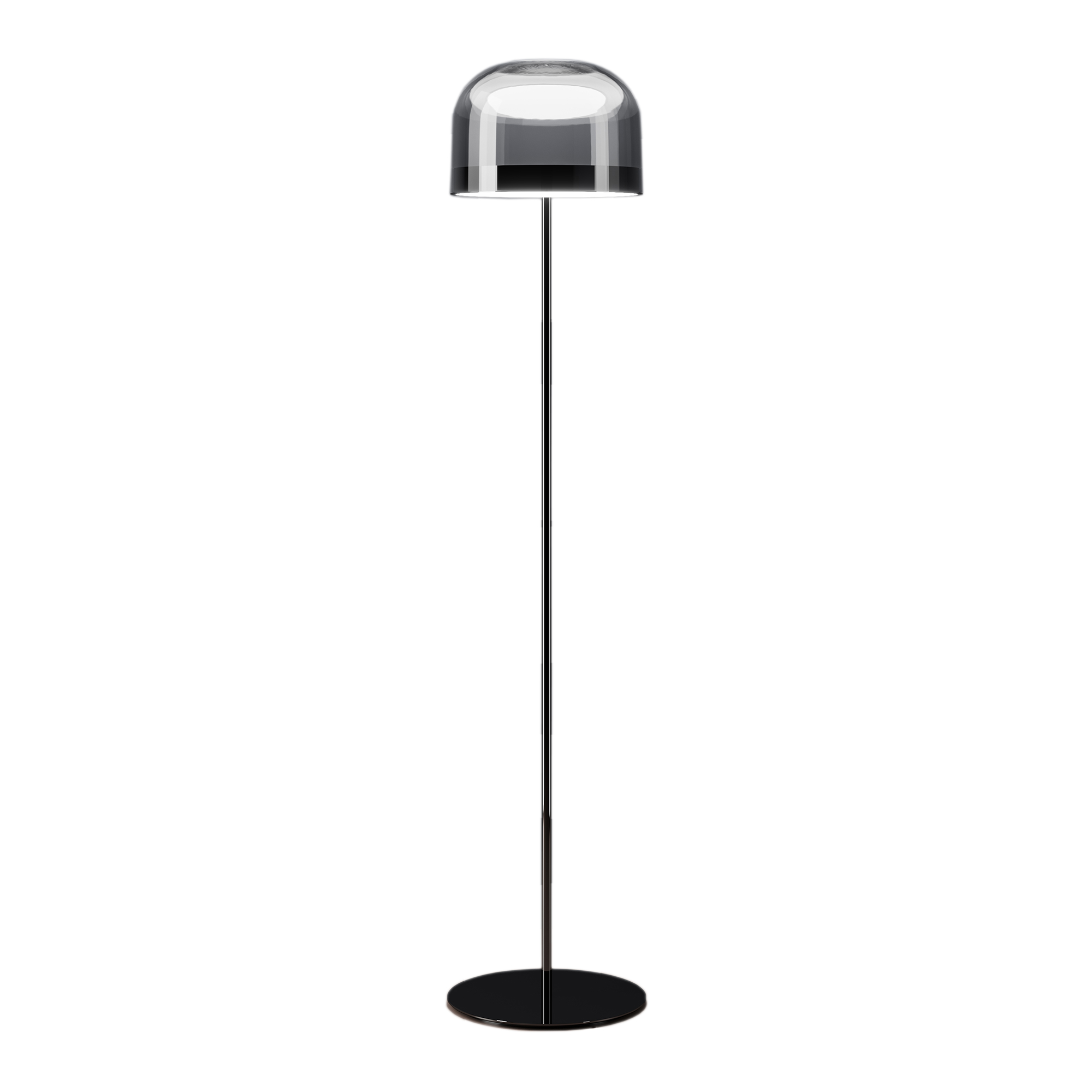 Equatore Floor Lamp är en golvlampa från Fontana Arte, formgiven av Gabriele och Oscar Buratti. Equatore-serien är bröderna Burattis moderna tolkning på en klassisk glaslampa. Lampan består av en omslutande transparant glasskärm som har en elegant metallisk effekt med en lampfot i metall. Lampan är dimbar och LED-ljuskälla medföljer. Finns i flera olika utföranden.