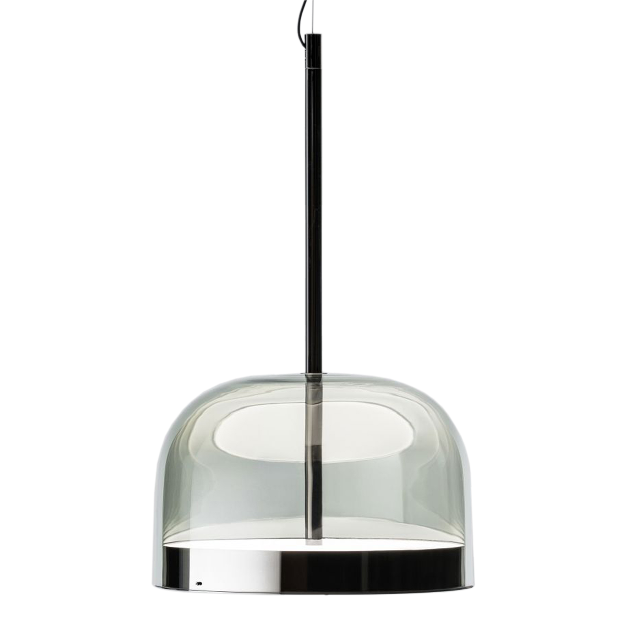 Equatore Suspension Lamp Black är en taklampa från Fontana Arte, formgiven av Gabriele & Oscar Buratti. Equatore-serien är bröderna Burattis moderna tolkning på en klassisk glaslampa. Lampan består av en omslutande transparant glasskärm som har en elegant metallisk effekt. Lampan är dimbar och LED-ljuskälla medföljer. Finns i flera olika utföranden.