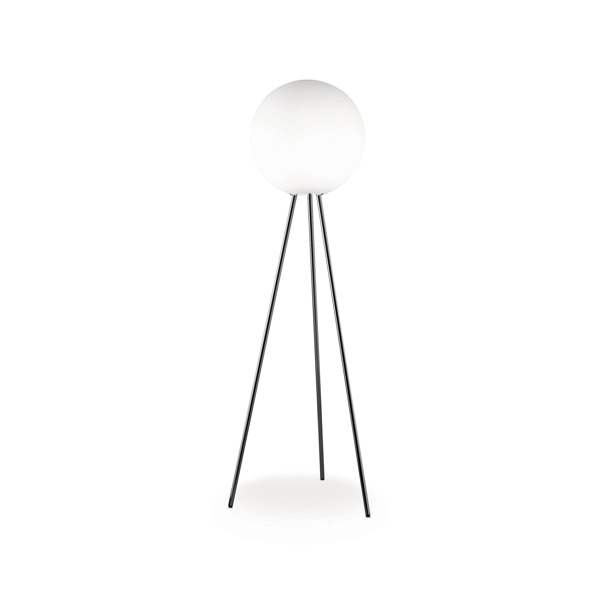 Prima Signora Floor Lamp är en golvlampa från Fontana Arte, formgiven av Daniela Puppa. Prima Signora är en elegant golvlampa som har en spektakulär glob av ljus som spider ljus och värme i ditt hem. Lampan består av en oval lampskärm i blåst vitt glas som är balanserad på tre ben av krompläterad metall. Kompositionen av den mjuka, sfäriska globen av glas tillsammans med de tre industriella metallbenen skapar ett välbalanserat resultat, allt signerat den italienska formgivaren Daniela Puppa.