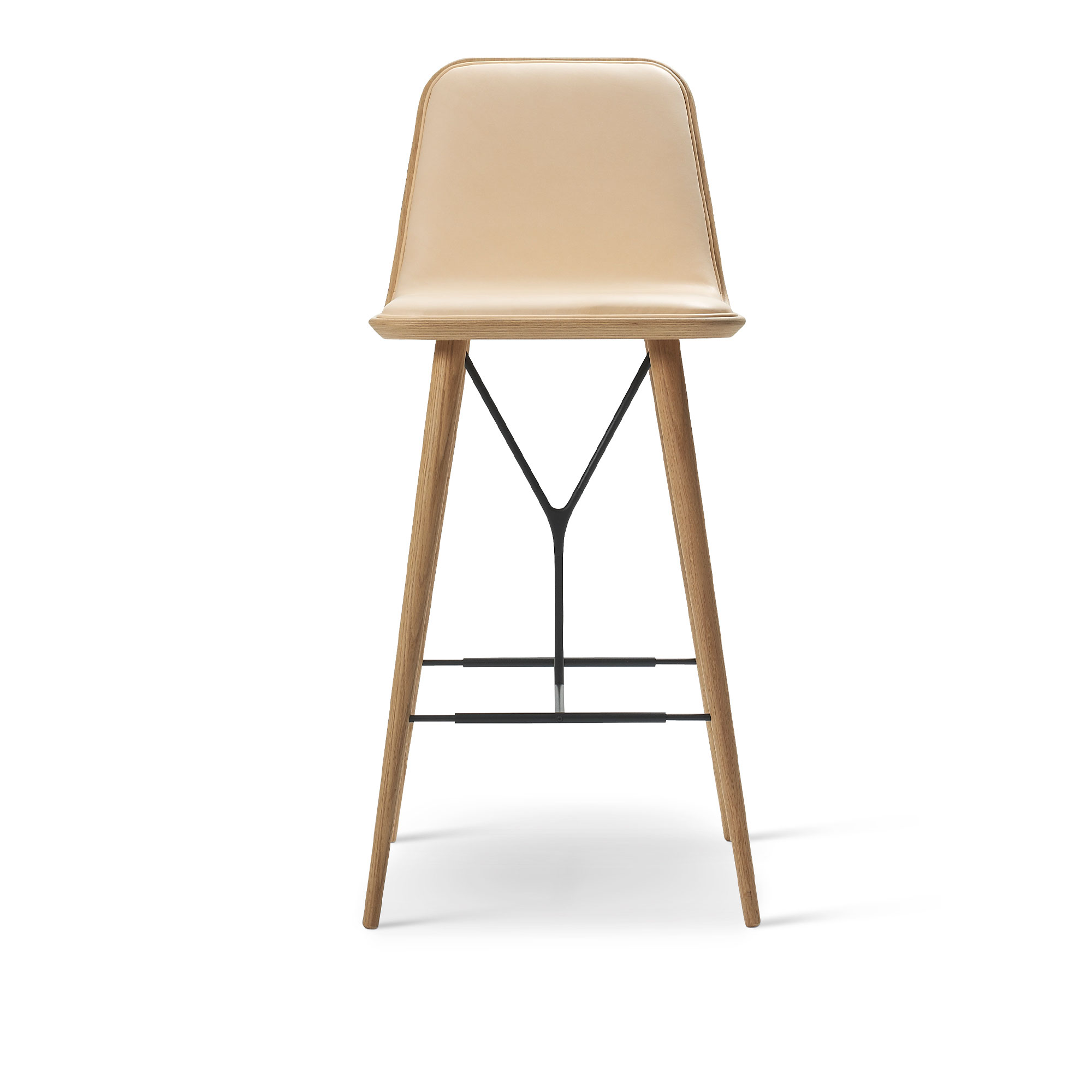 Fredericia Furniture - Spine Wood Base Barstool, Lackerad ek, Svart metall, Lädergrupp 4, 90 Natural - Barstolar - Space Copenhagen - Brun,Svart - Läder/Trä