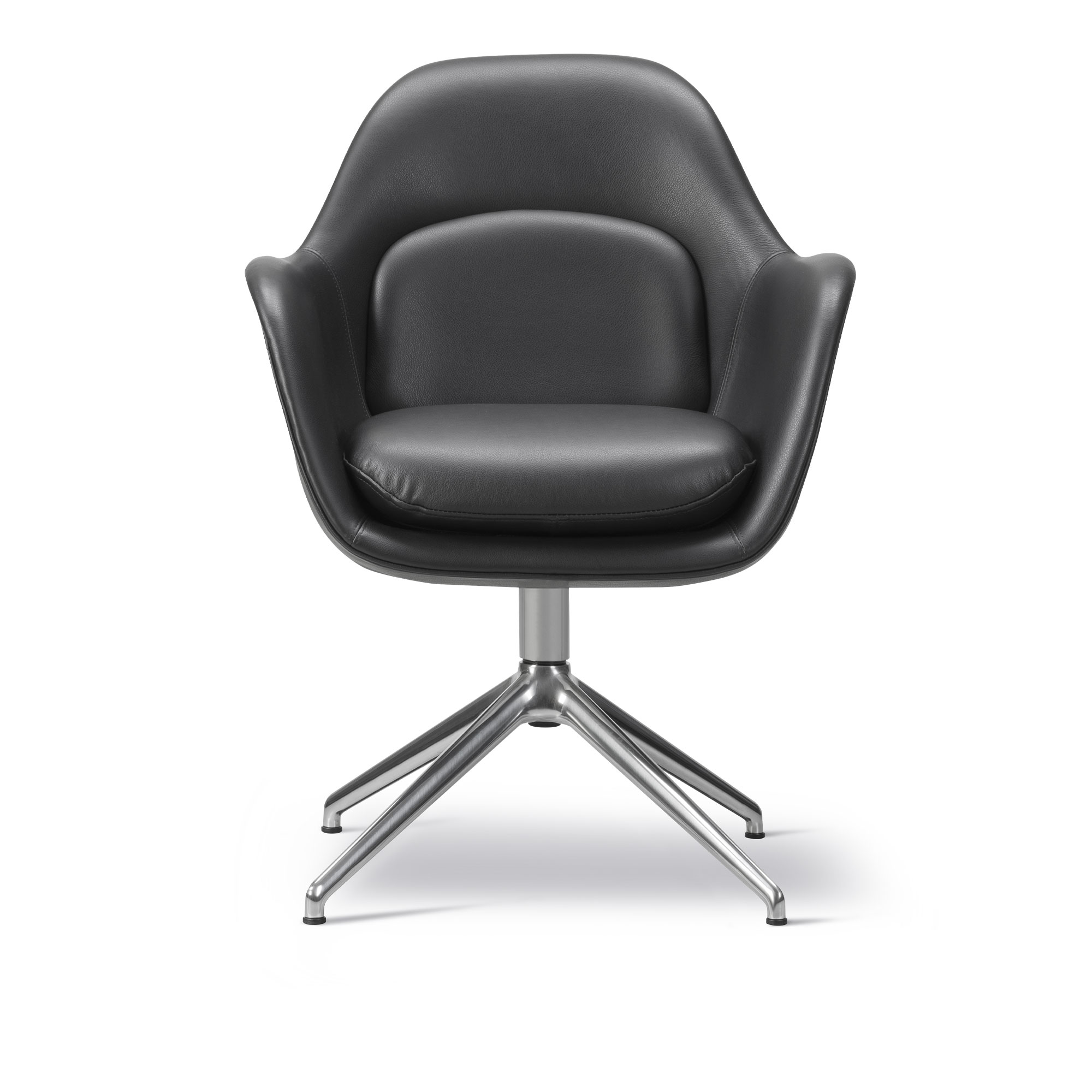 Fredericia Furniture - Swoon Chair Swivel Base, Polished aluminium, Läder 1, 301 Omni Black - Fåtöljer - Space Copenhagen - Silver,Brun - Metall/Textilmaterial