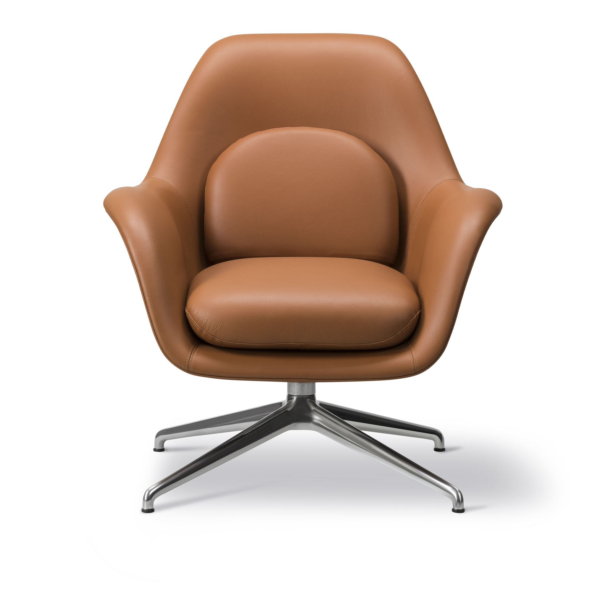 Fredericia Furniture - Swoon Lounge Petit Swivel Base Omni Cognac / Chrome - Fåtöljer - Space Copenhagen - Brun - Läder/Metall