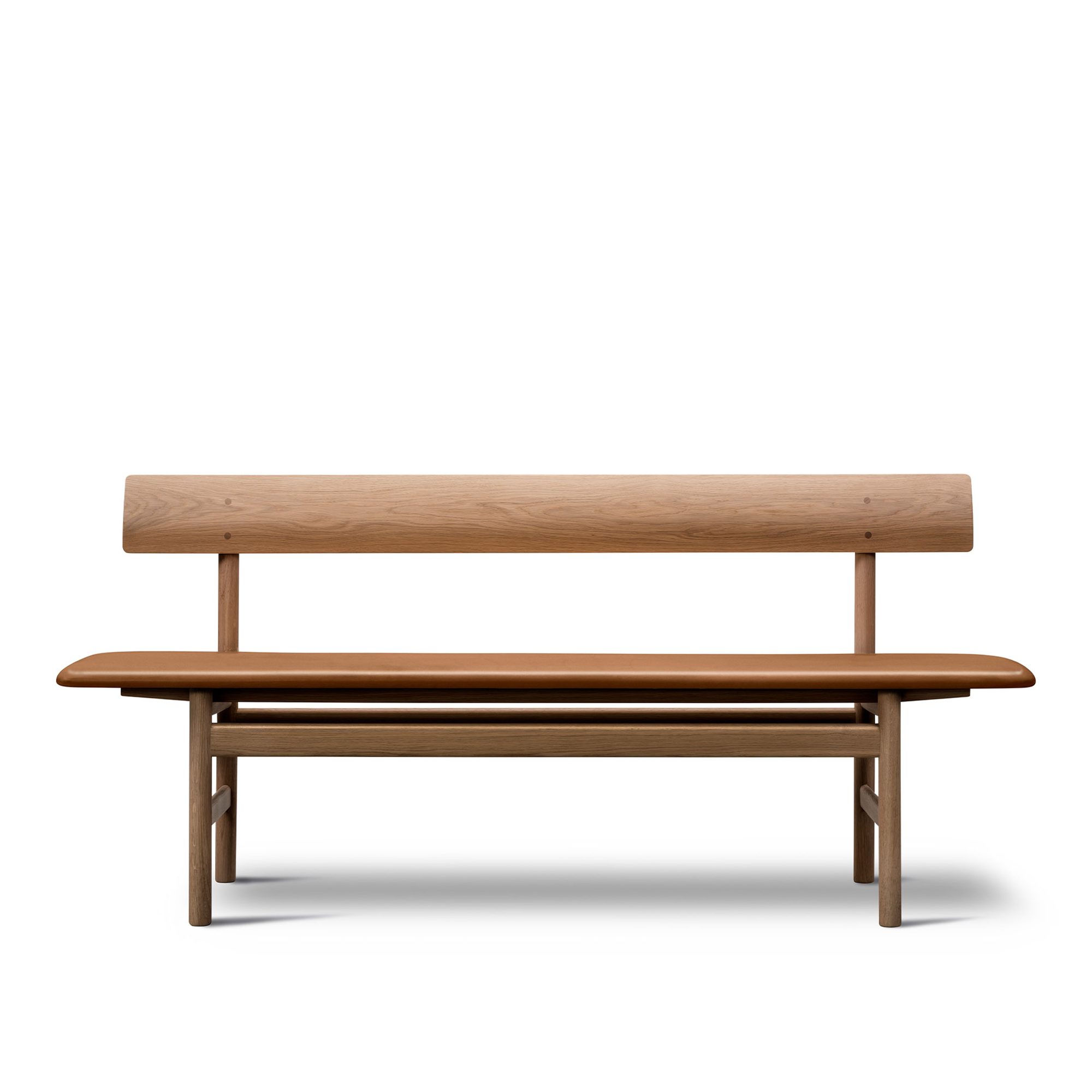 Fredericia Furniture - The Mogensen Bench, Oljad ek, Omni Cognac 307 - TV-bänkar - Børge Mogensen - Brun - Läder/Trä