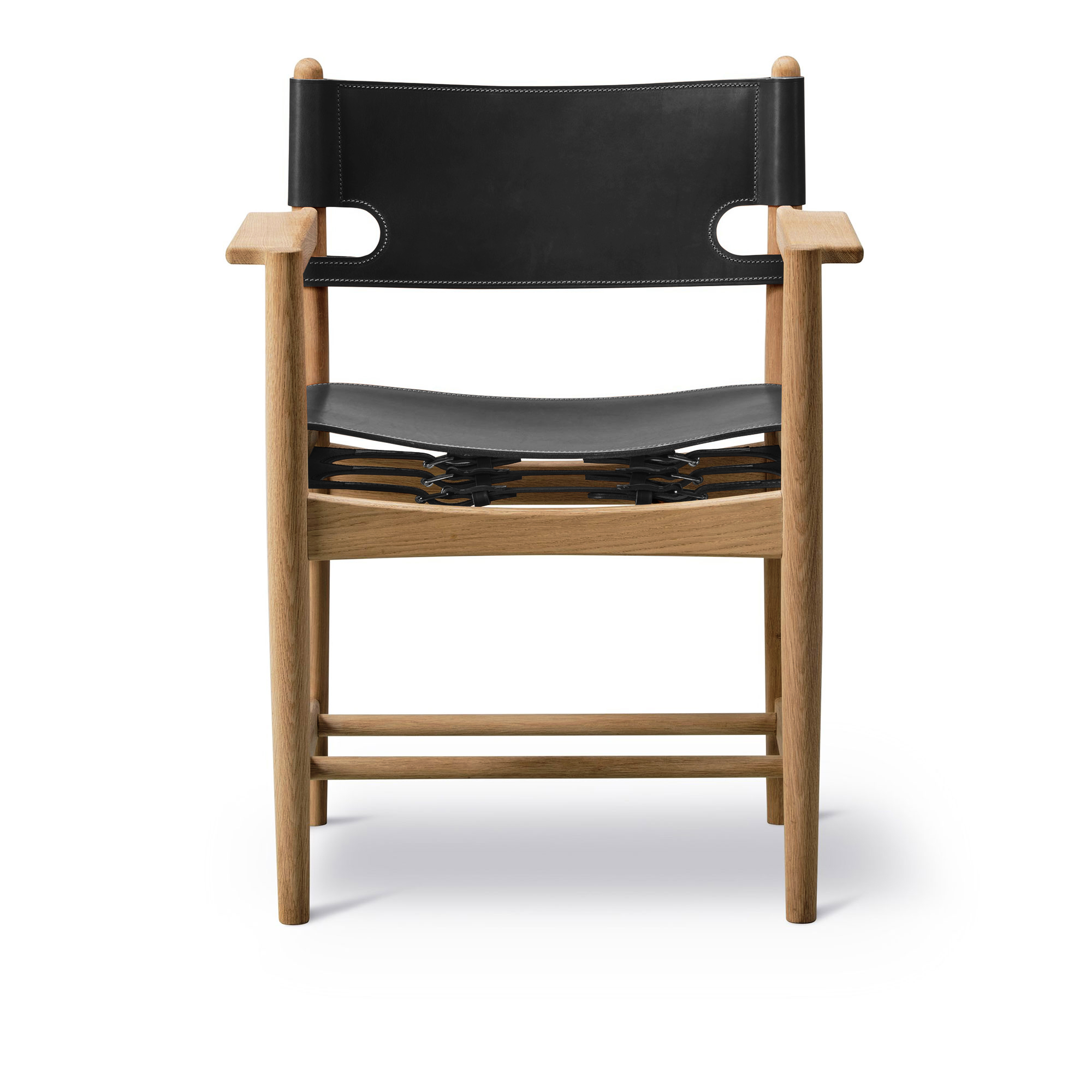 Fredericia Furniture - The Spanish Dining Armchair, Oak oiled, Black leather - Matstolar - Børge Mogensen - Svart - Läder/Trä