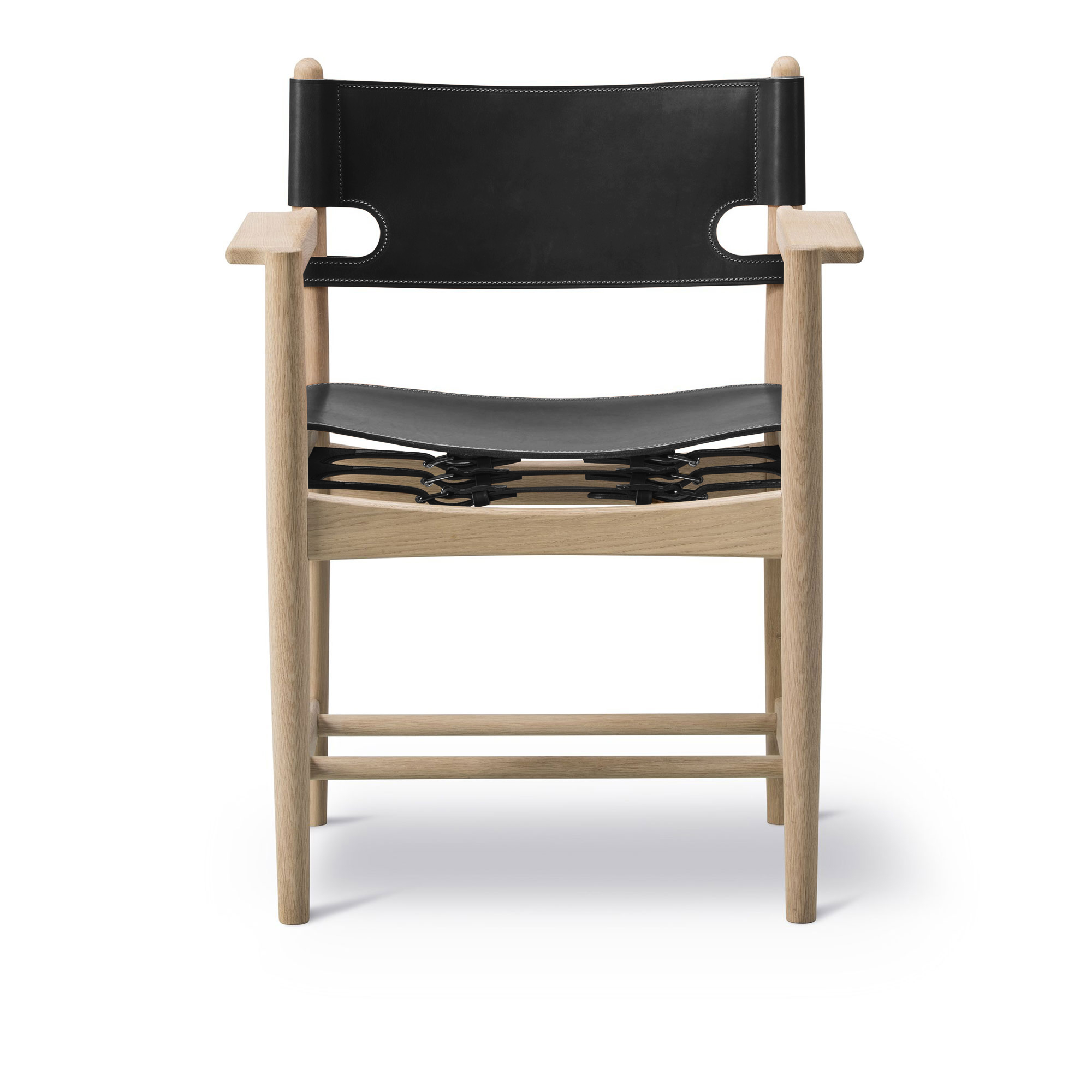 Fredericia Furniture - The Spanish Dining Armchair, Oak soap, Black leather - Matstolar - Børge Mogensen - Svart - Läder/Trä