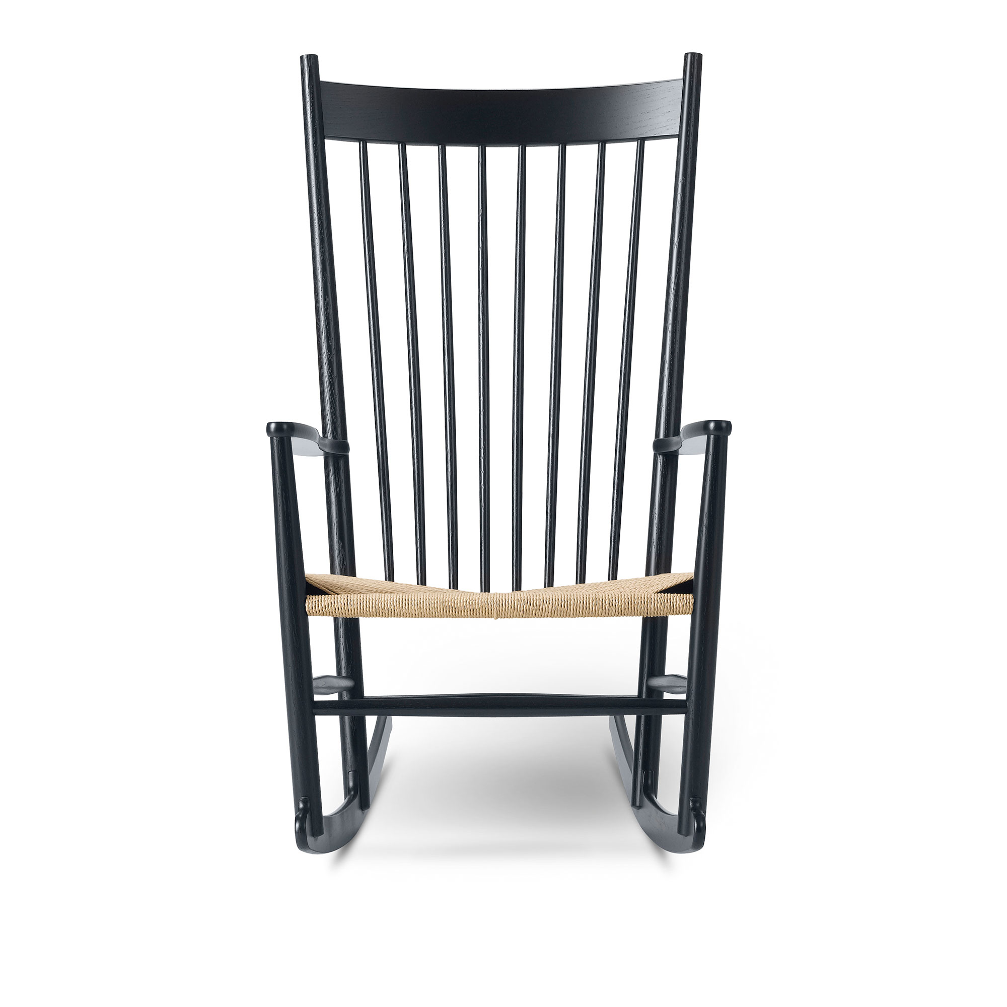 Fredericia Furniture - Wegner J16 Rocking Chair, Svartlackerad ek, Naturfärgad sits - Fåtöljer - Hans J. Wegner - Beige,Svart - Naturmaterial/Trä