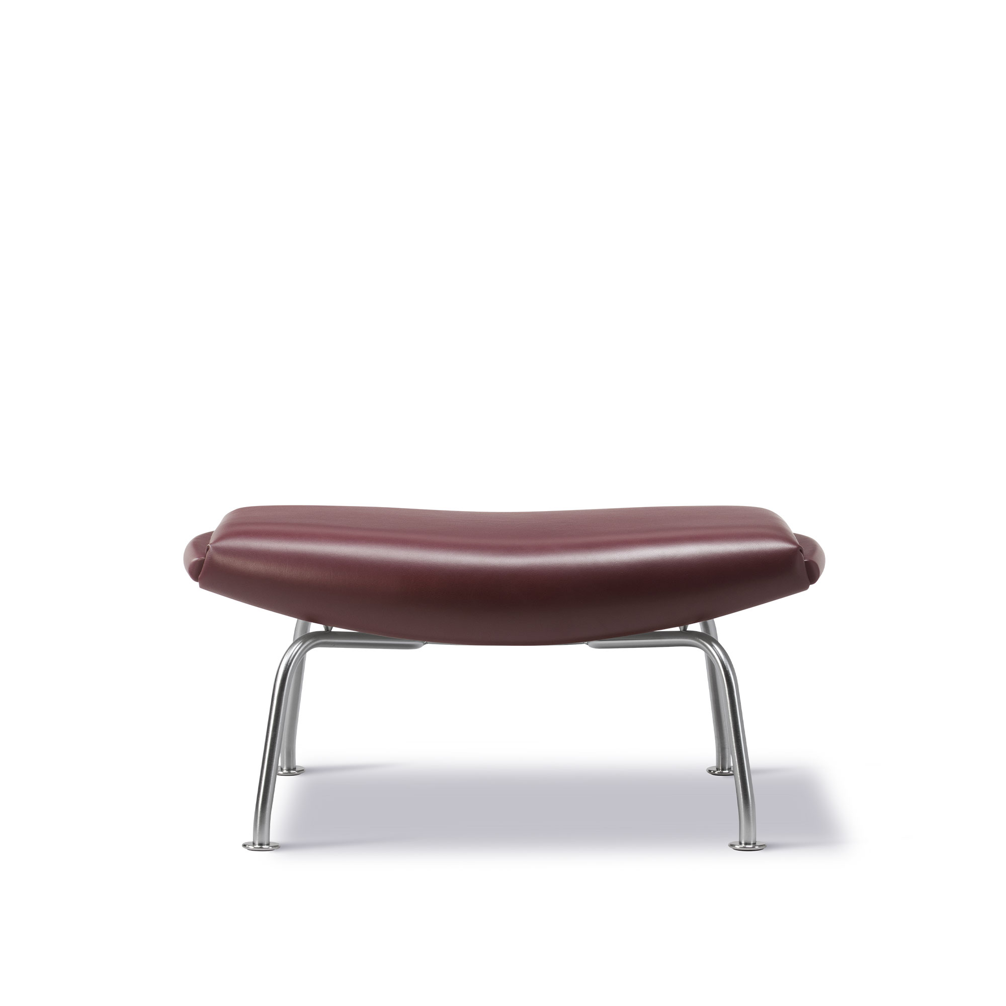 Wegner Ox Ottoman är en elegant fotpall formgiven av Hans J. Wegner som produceras av danska Fredericia Furniture. Fotpallen passar lika bra till Wegners ikoniska fåtölj Wegner Ox Chair som till Wegner Queen Chair. Ox Ottoman kommer med ett underrede av förkromat stål, stomme av massivt trä och stoppning i polyuretanskum som klätts med högkvalitativt läder. Fotpallen finns i en rad olika utföranden och i ett flertal tyger och läder. Kontakta oss gärna för mer information.