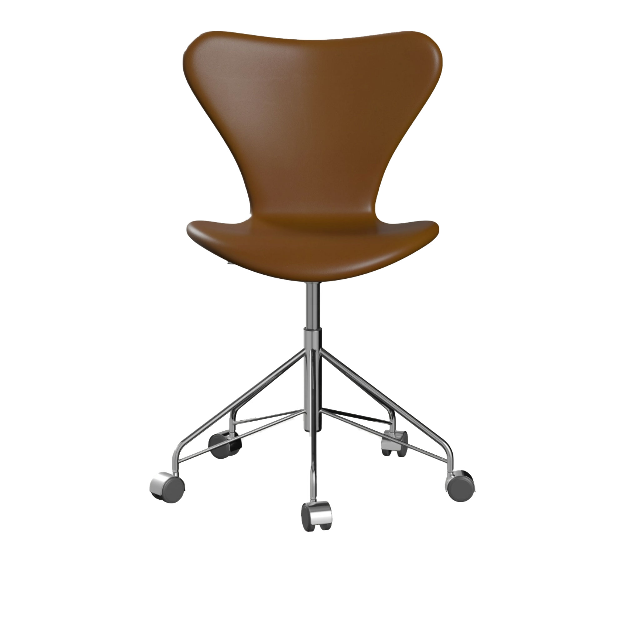 Fritz Hansen - 3117 Sjuan - Helklädd, Läder, Soft Walnut - Kontorsstolar - Arne Jacobsen - Brun