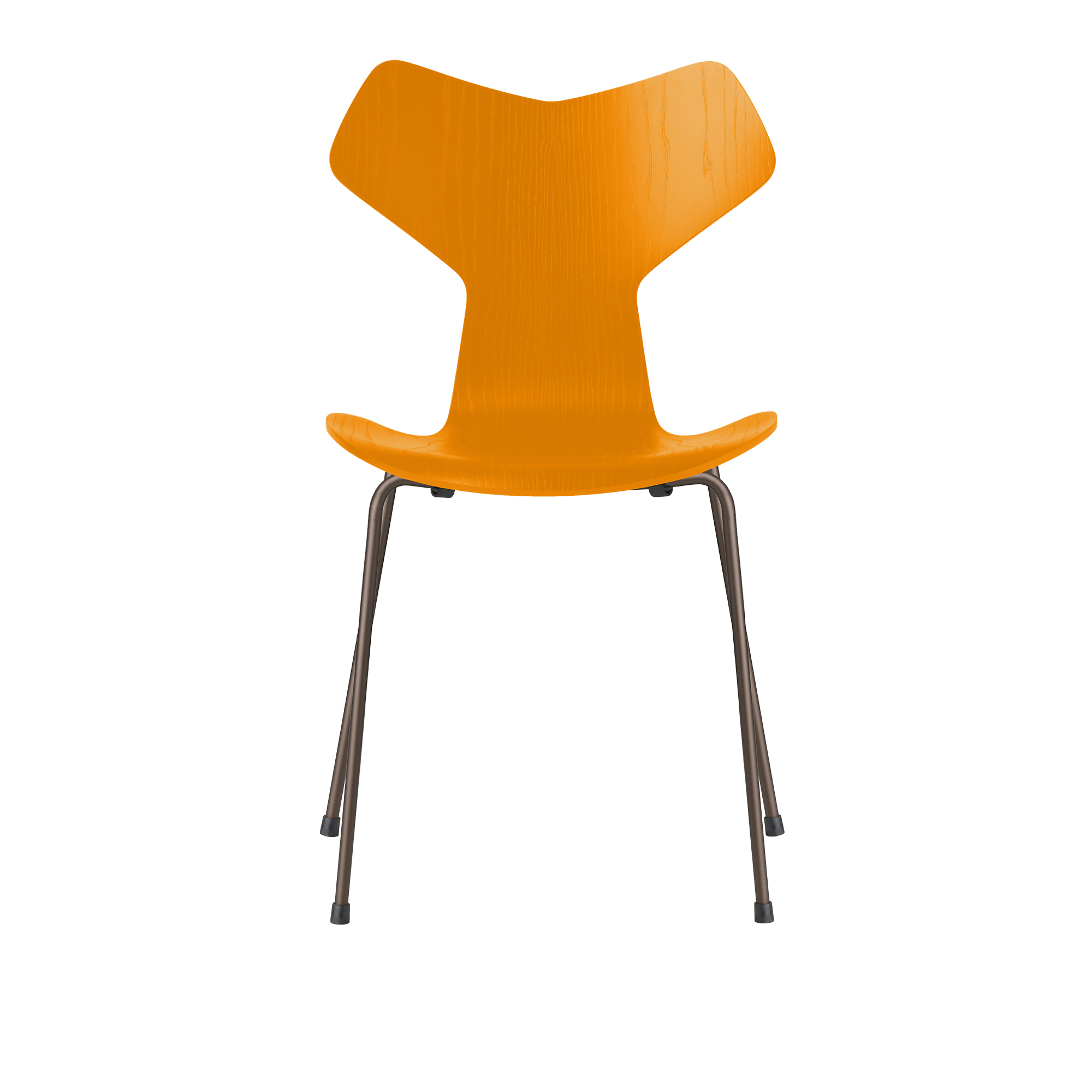 Fritz Hansen - 3130 Grand Prix, Färgad Ask, Burnt Yellow, Underrede Brown Bronze - Matstolar - Arne Jacobsen - Gul - Metall/Trä
