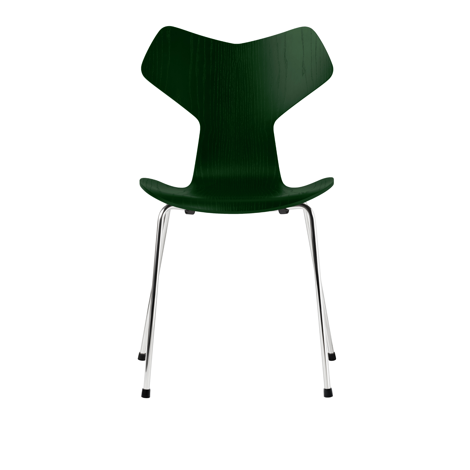 Fritz Hansen - 3130 Grand Prix, Färgad Ask, Evergreen, Underrede Förkromat Stål - Matstolar - Arne Jacobsen