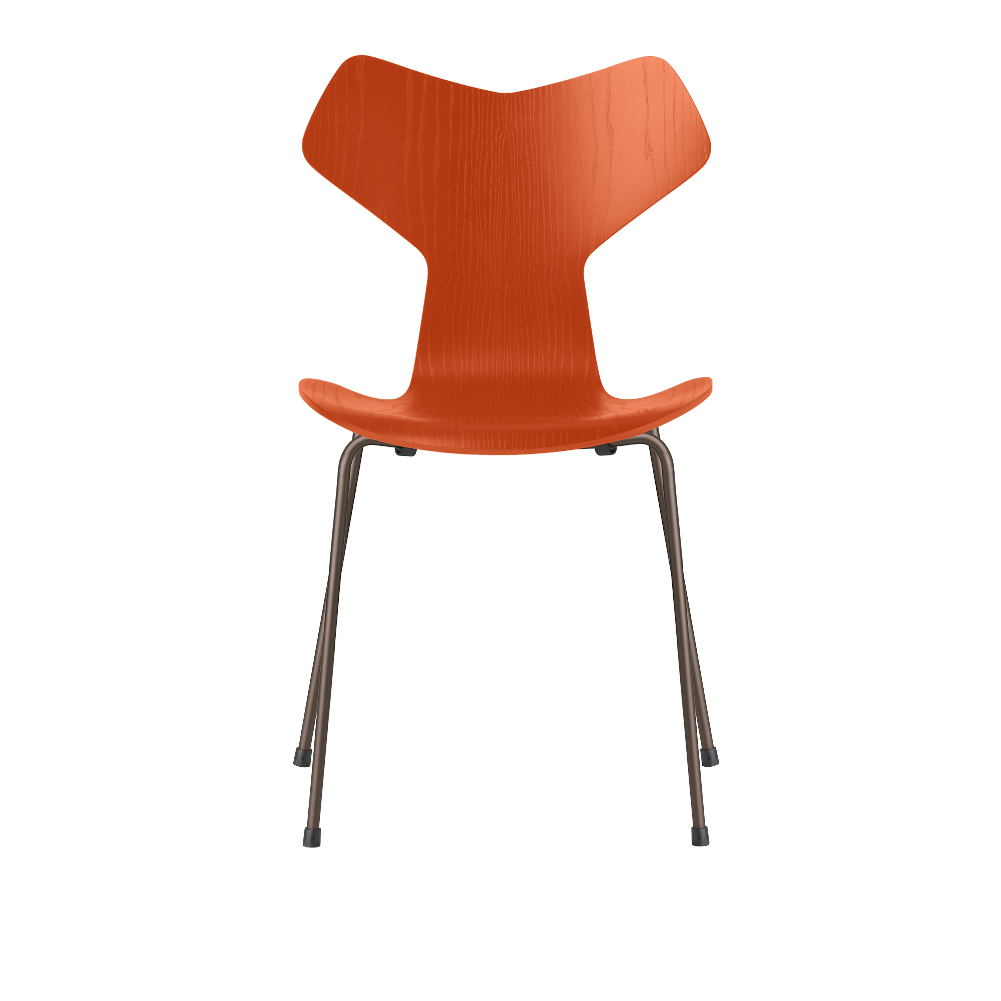 Fritz Hansen - 3130 Grand Prix, Färgad Ask, Paradise Orange, Underrede Brown Bronze - Matstolar - Arne Jacobsen - Orange - Metall/Trä