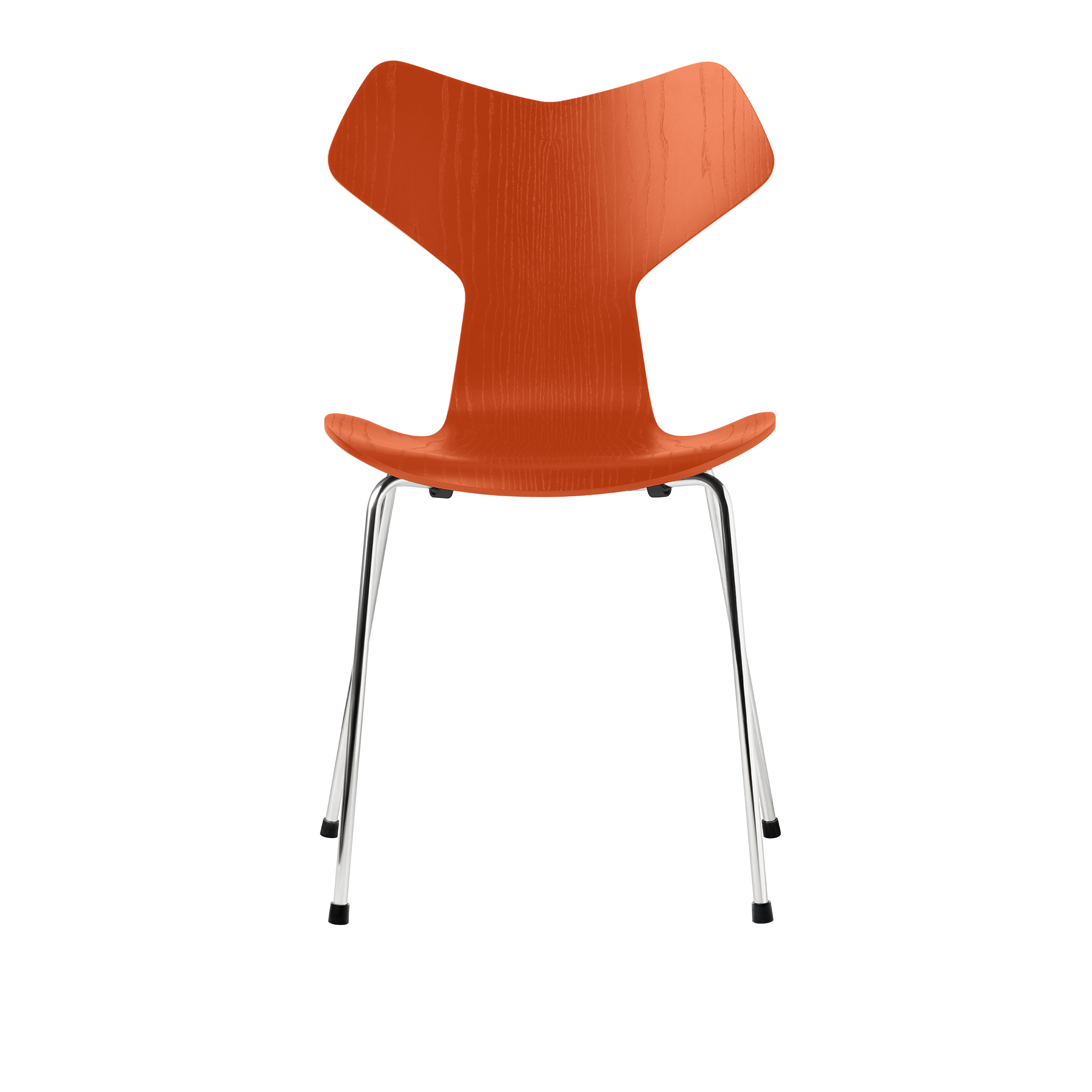 Fritz Hansen - 3130 Grand Prix, Färgad Ask, Paradise Orange, Underrede Förkromat Stål - Matstolar - Arne Jacobsen - Orange - Metall/Trä