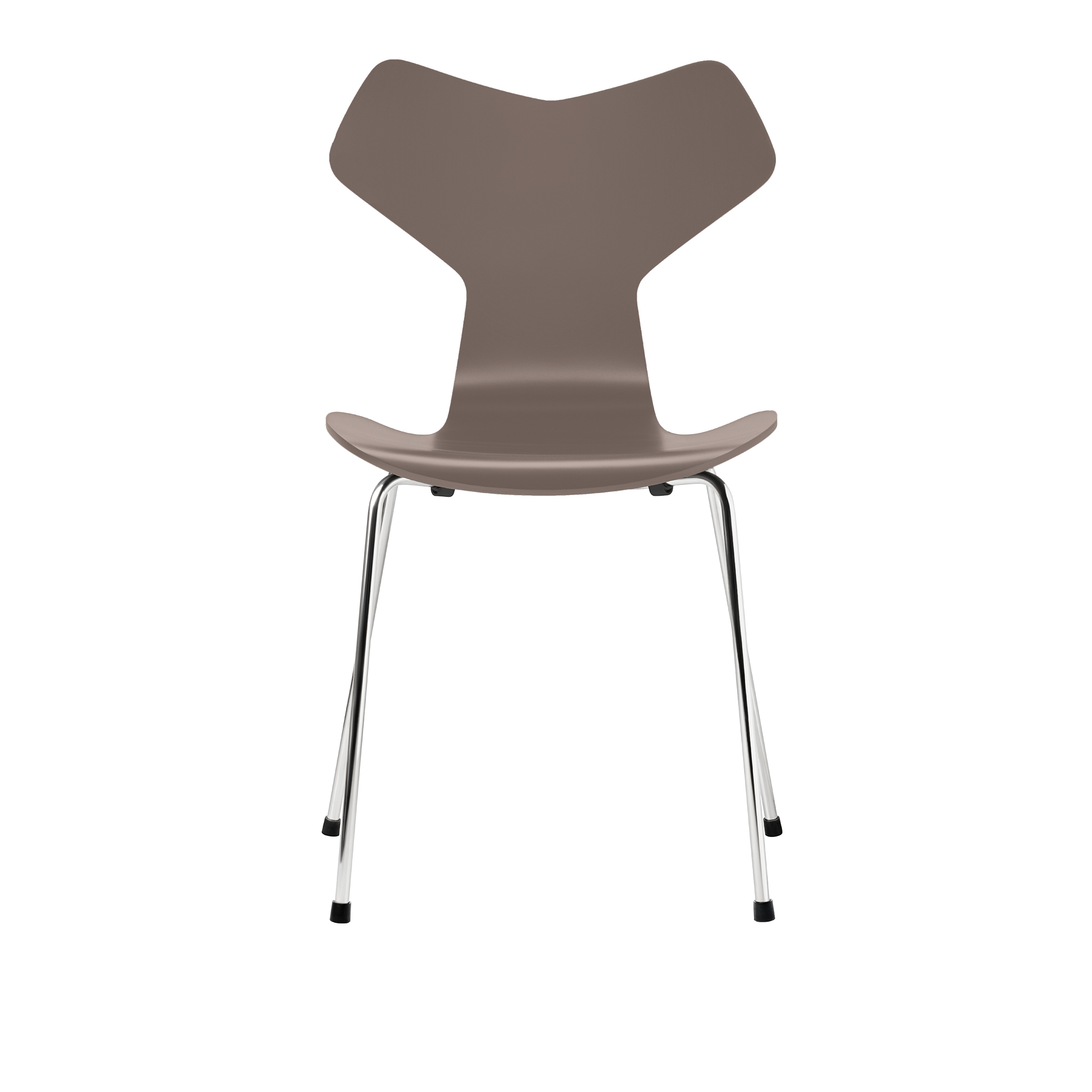 Fritz Hansen - 3130 Grand Prix, Lackad, Deep Clay, Underrede Förkromat Stål - Matstolar - Arne Jacobsen - Beige,Grå - Metall/Trä