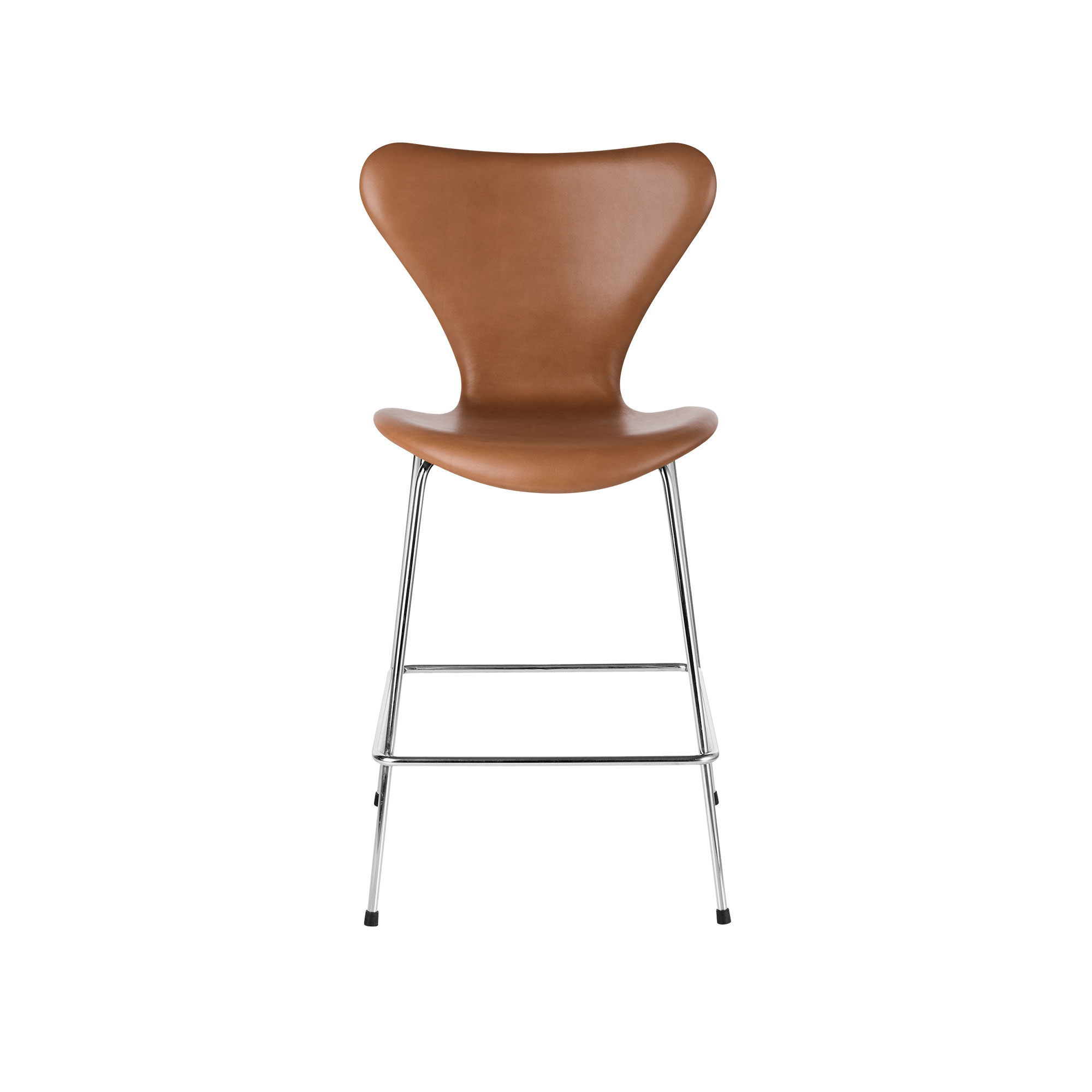 Fritz Hansen - 3187 Sjuan - Helklädd, Läder, Soft Walnut - Barstolar - Arne Jacobsen - Brun - Läder/Metall/Trä