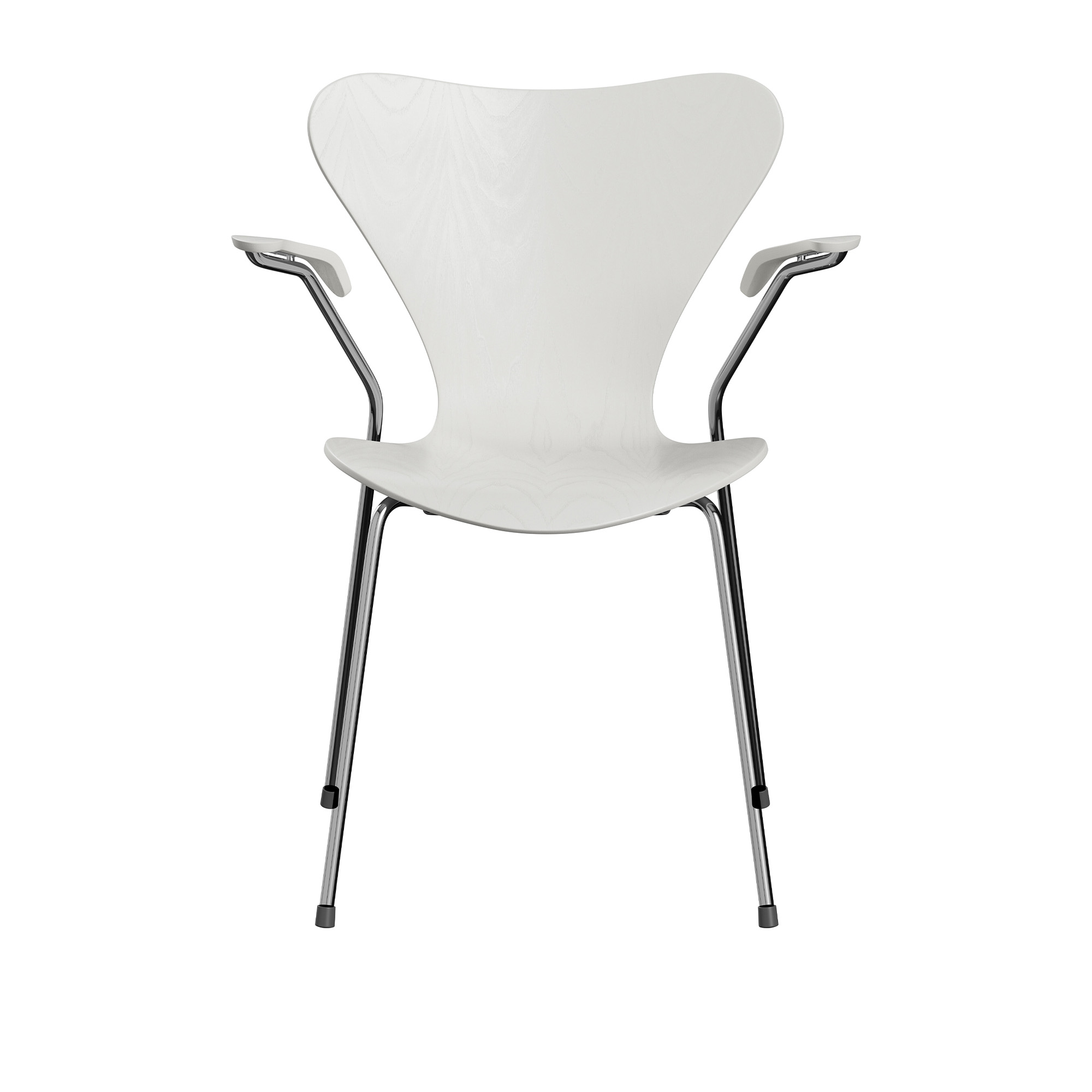 Fritz Hansen - Sjuan 3107 stol färgad askfanér stålstativ krom vit - Matstolar - Arne Jacobsen - Vit - Trä
